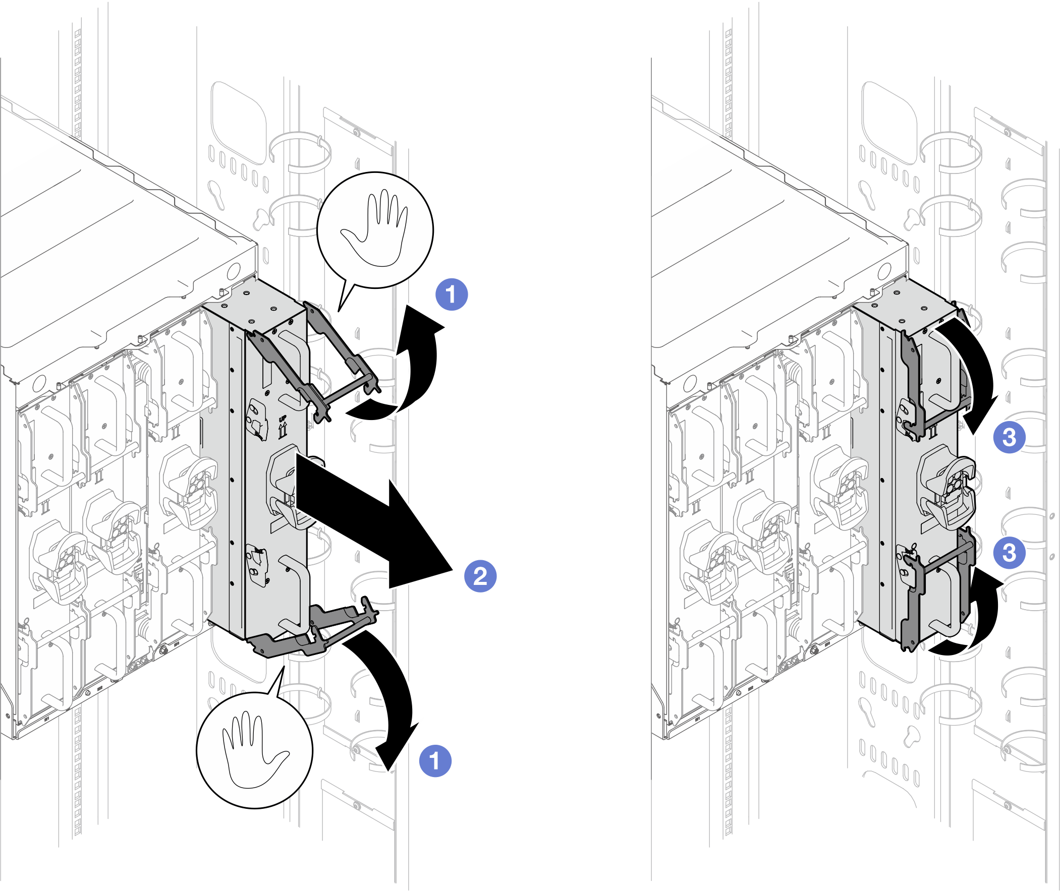 Es wird dringend empfohlen, vor dem Entfernen der PCS die Leistung jedes im Gehäuse installierten Knotens zu reduzieren, indem Sie den Knoten in den Leerlauf- oder ausgeschalteten Zustand versetzen.