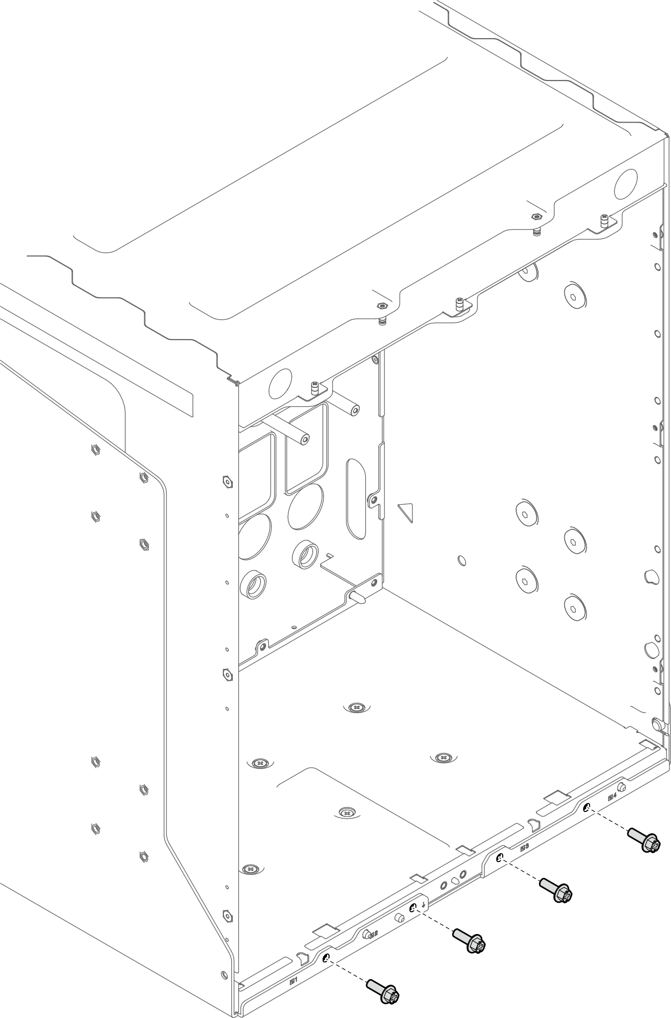 Entfernen Sie sechs Schrauben an jeder Rackstütze an, um die untere vordere Halterung vom Gehäuse zu entfernen.