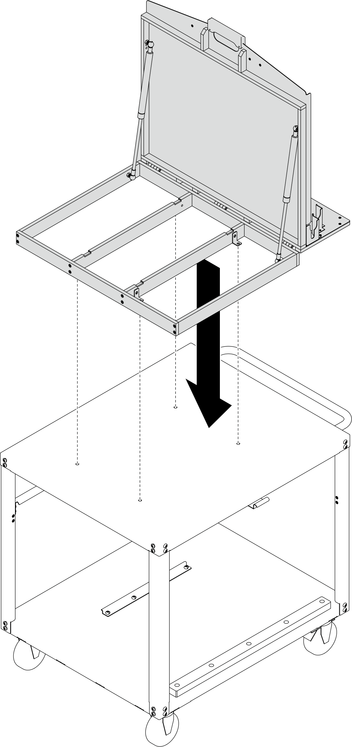 Utilice esta información para configurar el conjunto del carro de la estructura rotativa, que es una herramienta obligatoria para la extracción e instalación de bandejas.