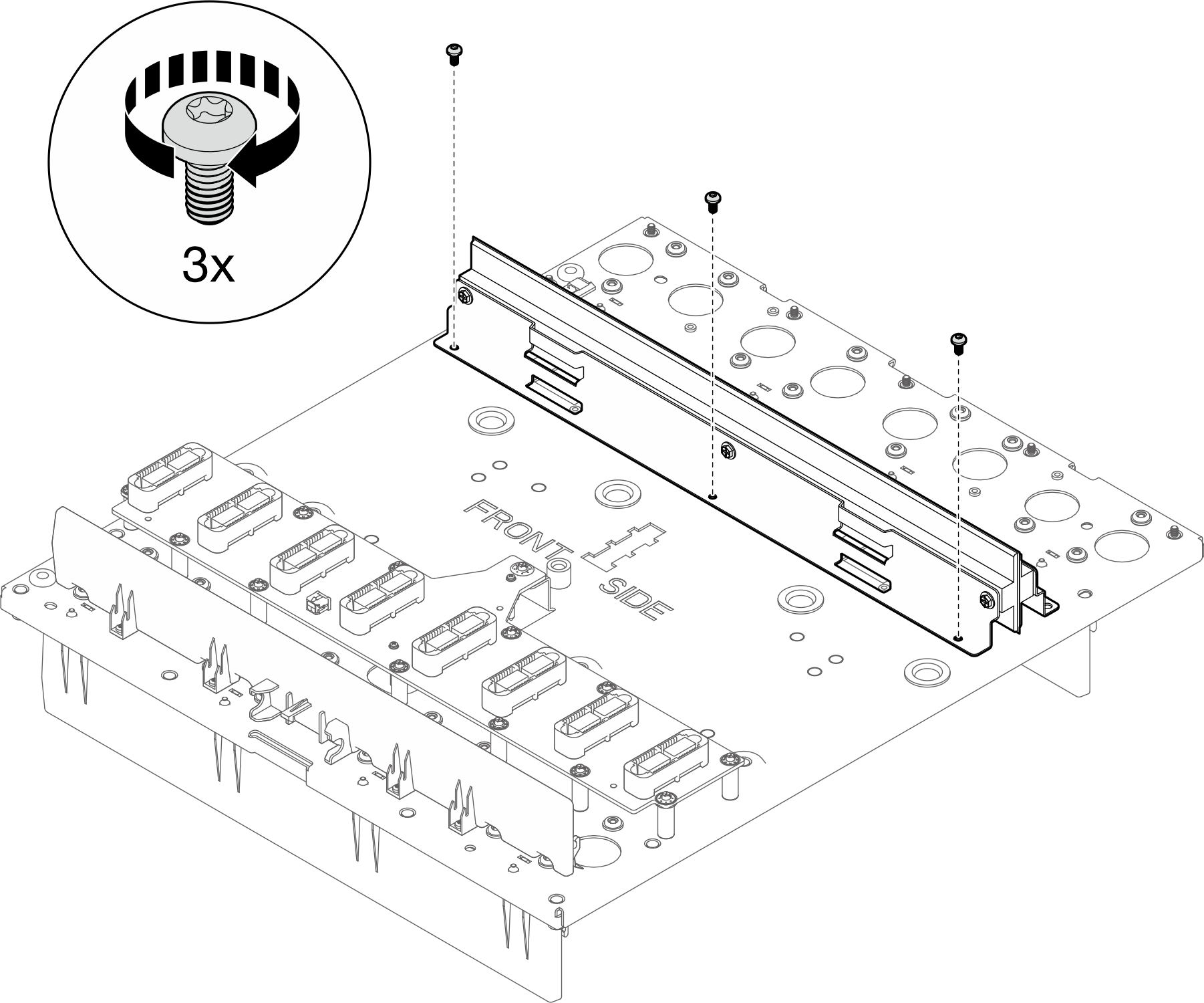 Instale el conjunto de la placa media del alojamiento. Consulte Instalación del conjunto de la placa media.