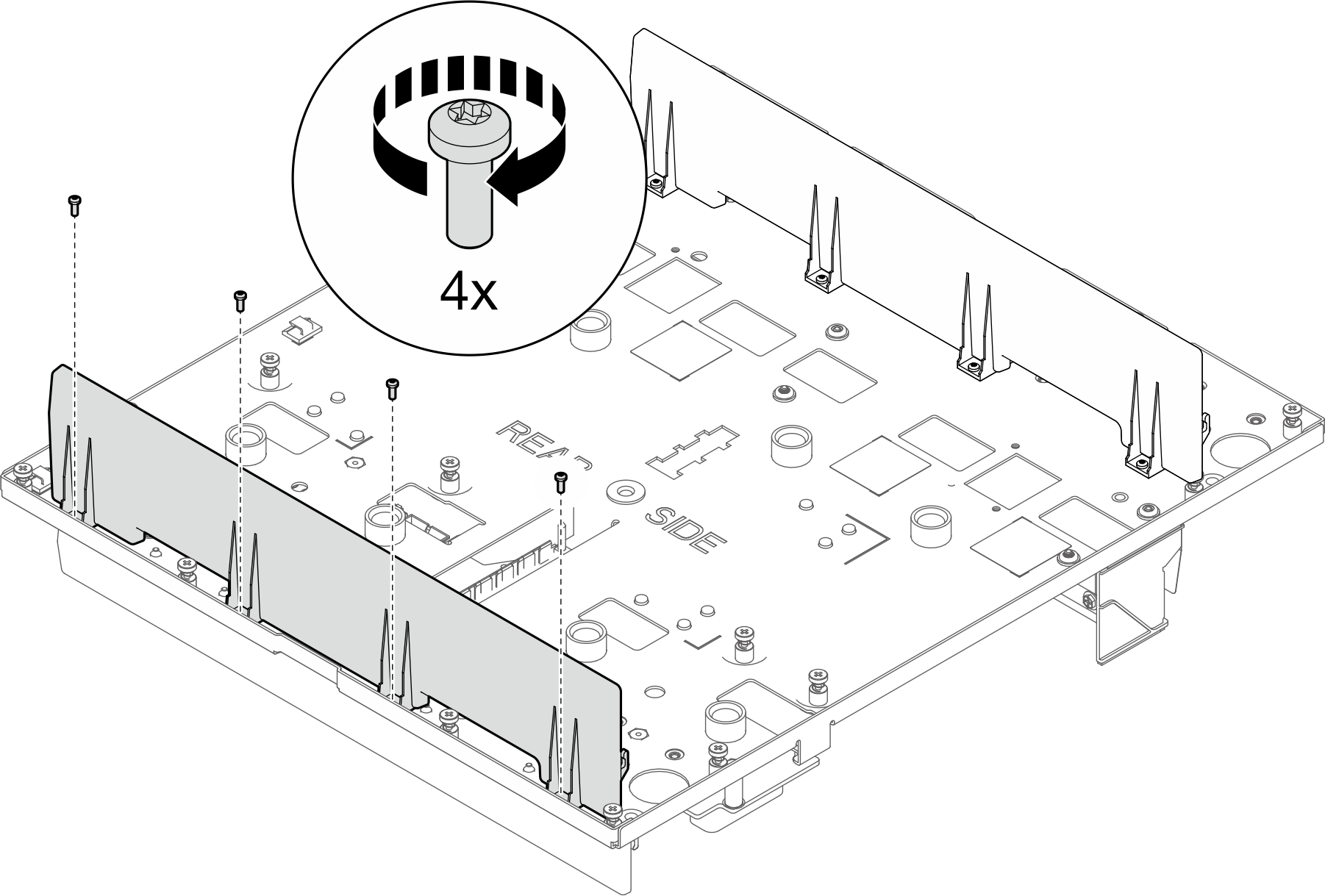 Instale el conjunto de la placa media del alojamiento. Consulte Instalación del conjunto de la placa media.
