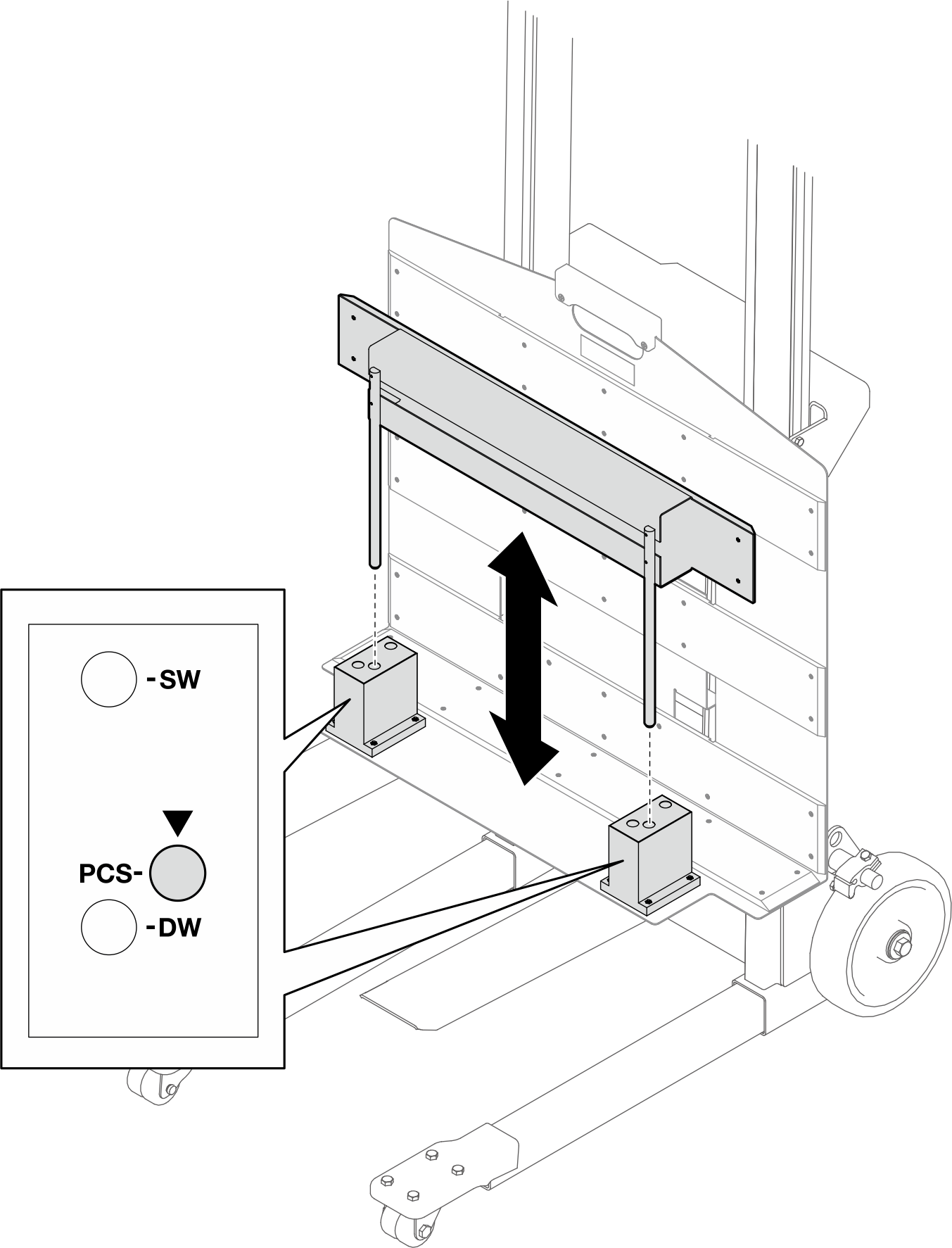 Outil de levage Genie GL-8 installé avec le dispositif d’outil de levage. Le frein à pied doit également être fixé à l’outil de levage.