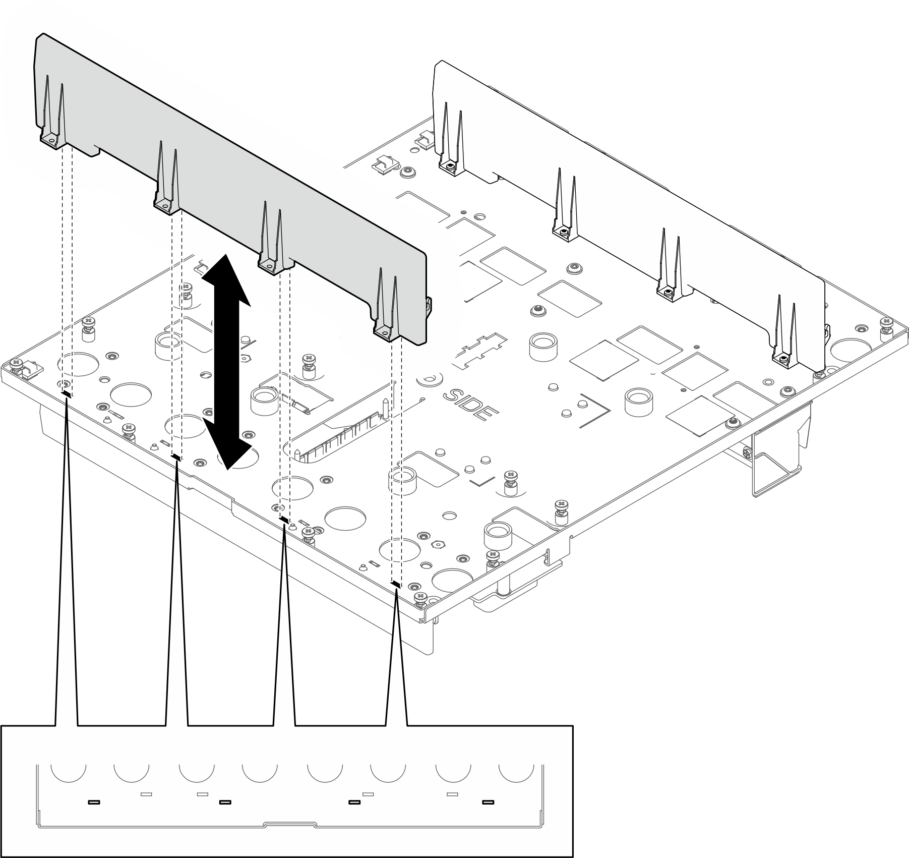 エンクロージャー・ミッドプレート・アセンブリーを取り付けます。ミッドプレート・アセンブリーの取り付けを参照してください。