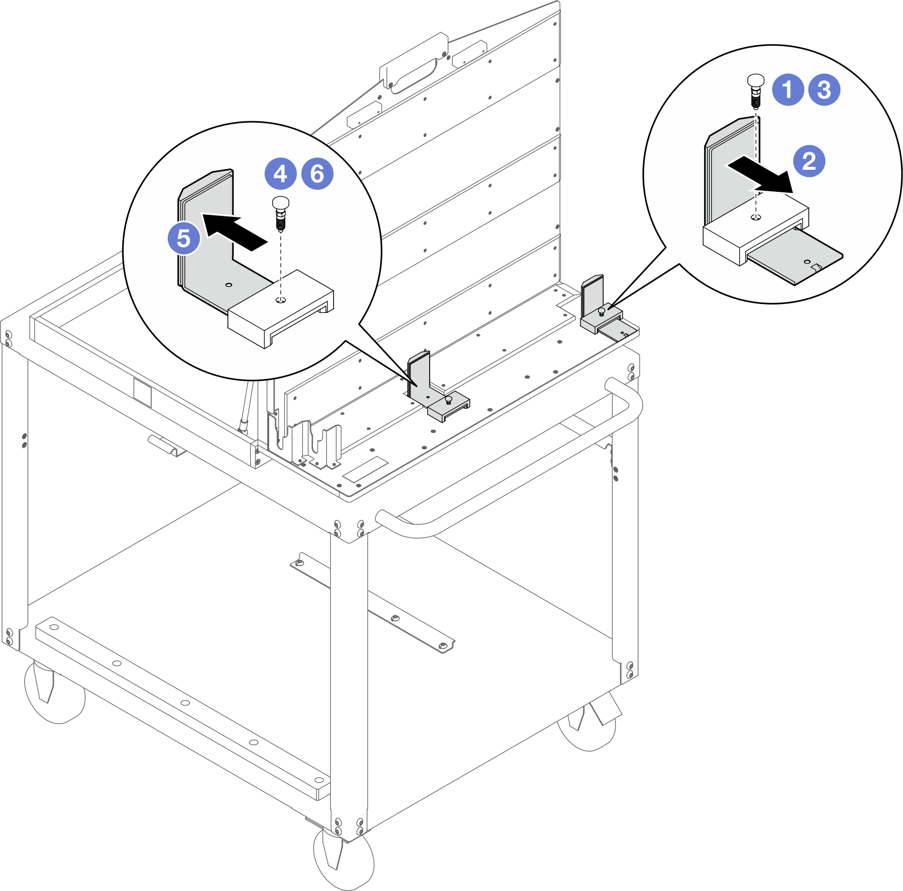 組み立て手順については、回転固定具カート・アセンブリーのセットアップを参照してください