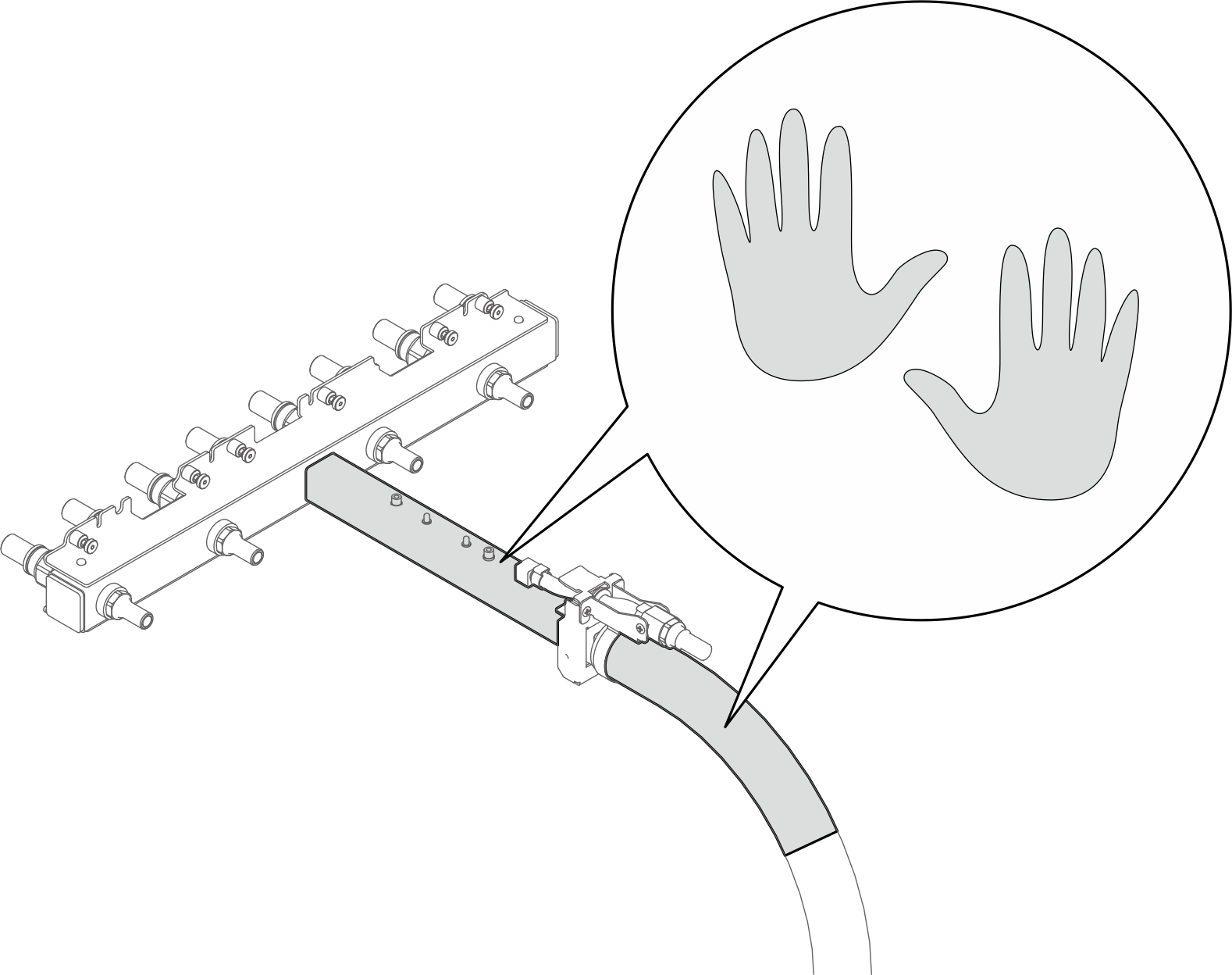 - 多岐管の取り外しまたは取り付けを行うときは、下の図で指定されているセクションで多岐管を持ってください。図 1. 多岐管のタッチ・ポイント