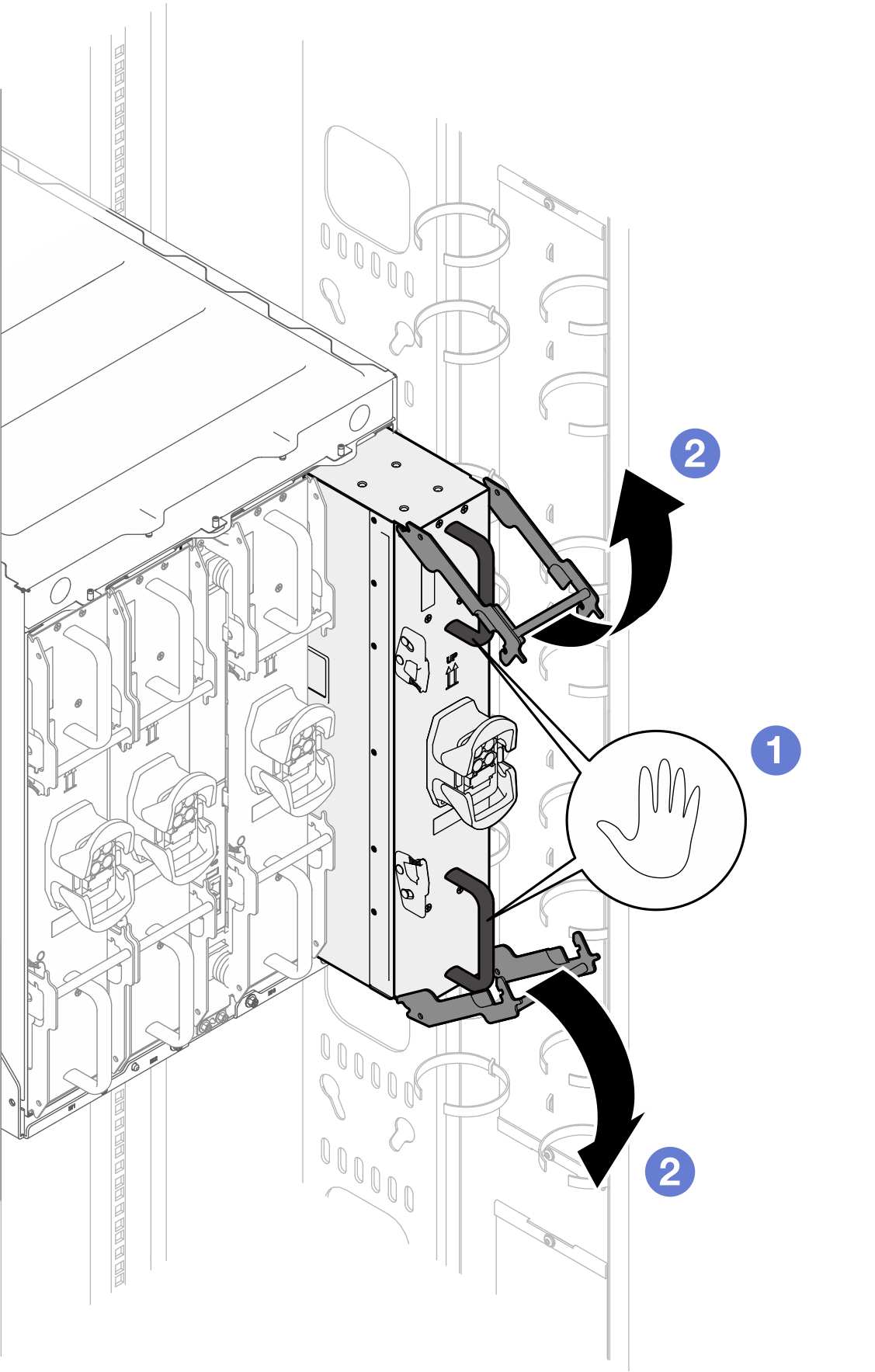 서버의 무게로 인해 안전상의 이유로 트레이 또는 PCS 제거 시 Genie® Lift™ GL™-8 사용을 적극 권장합니다. Lenovo는 부가 고정 장치인 Genie Lift GL-8 Option Kit 및 GL-8 Kit for N1380 and SC Systems가 있는 리프트를 제공합니다. 현장에서 리프트 도구를 사용할 수 없는 경우에는 숙련된 기술자가 도착하여 재설치를 처리하기 전에 고객이 장비를 접근 가능하고 전원이 공급되는 영역으로 옮겨야 합니다. Lenovo는 랙이 없는 아이템을 통해 리프트 도구 및 추가 고정 장치로 N1380 및 SC 시스템을 위한 완벽한 솔루션을 구성할 것을 강력히 권고합니다.