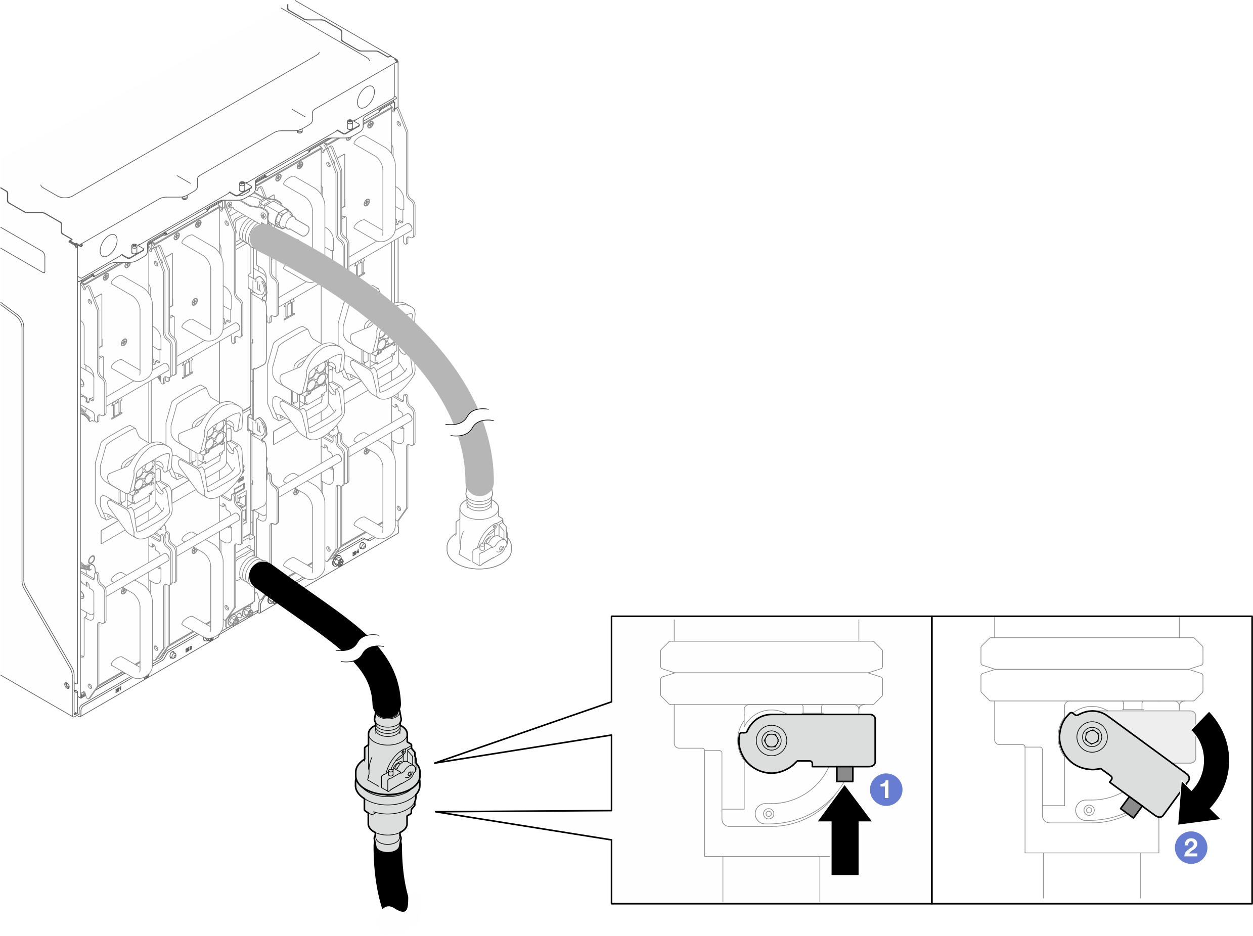 | 2 첫 번째 엔클로저의 호스 리턴 - 두 번째 엔클로저의 호스 공급에 연결 |