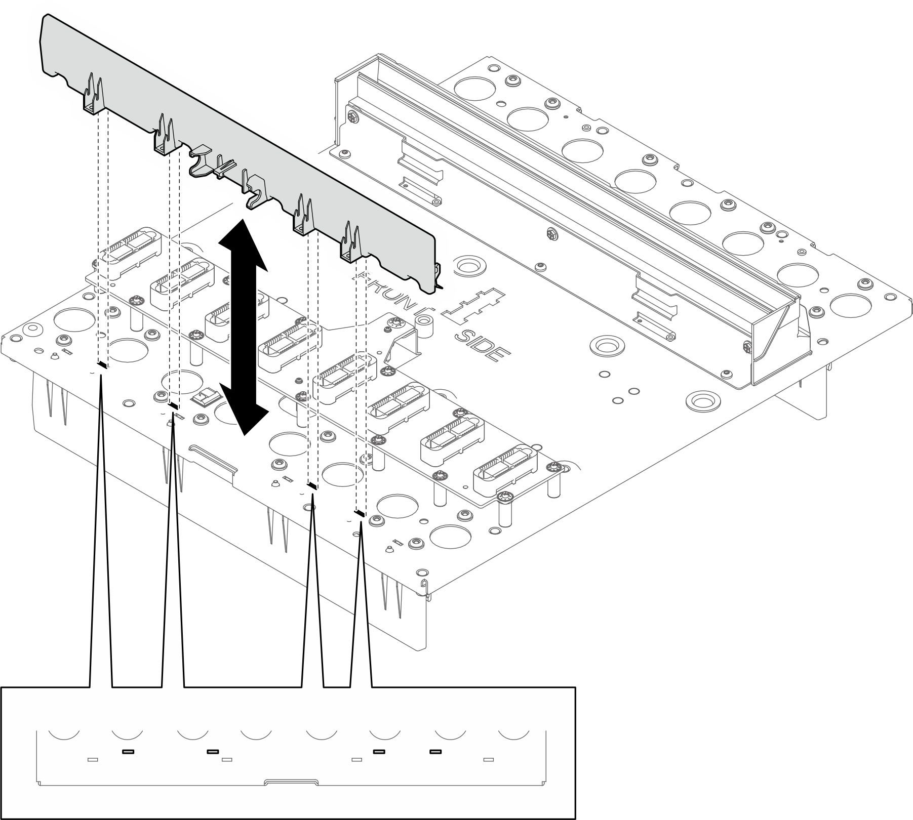 엔클로저 중간 플레이트 어셈블리를 설치합니다. 중간 플레이트 어셈블리 설치의 내용을 참조하십시오.