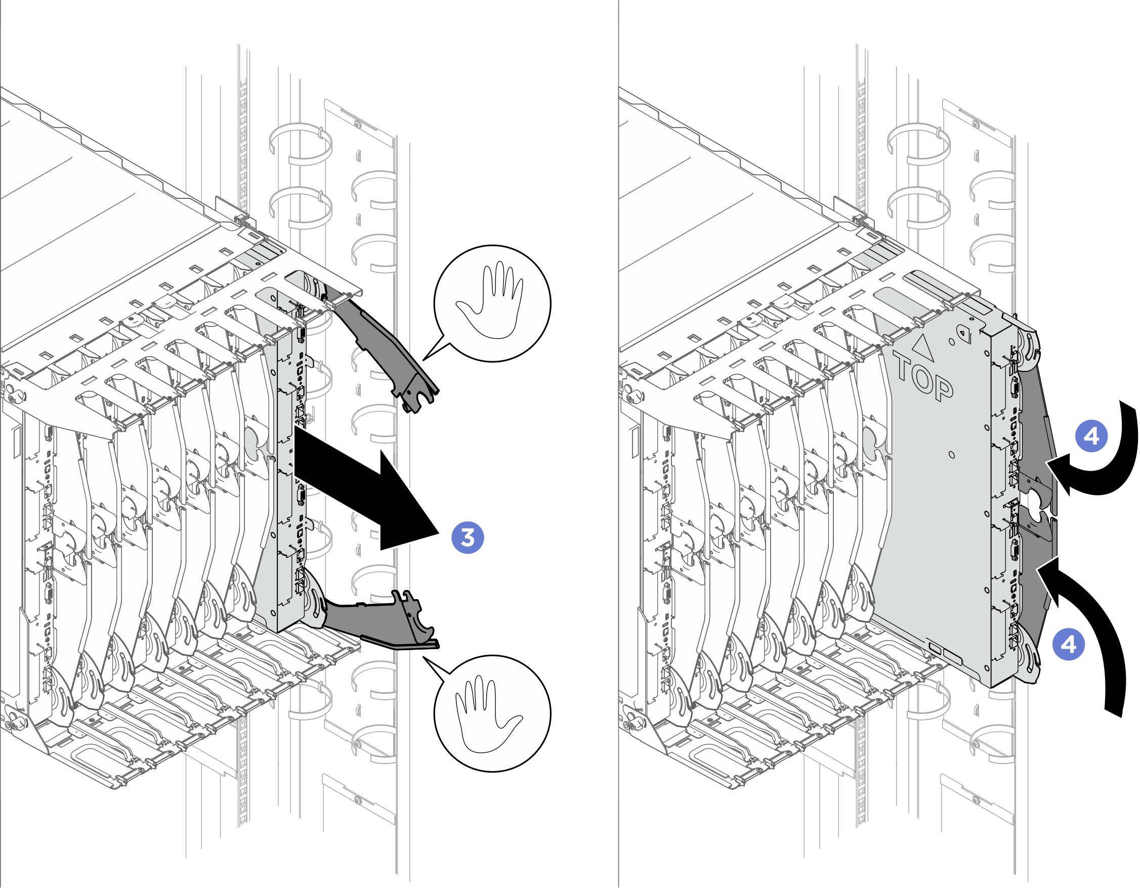 Use extra force to disconnect QSFP cables if they are connected to the solution.