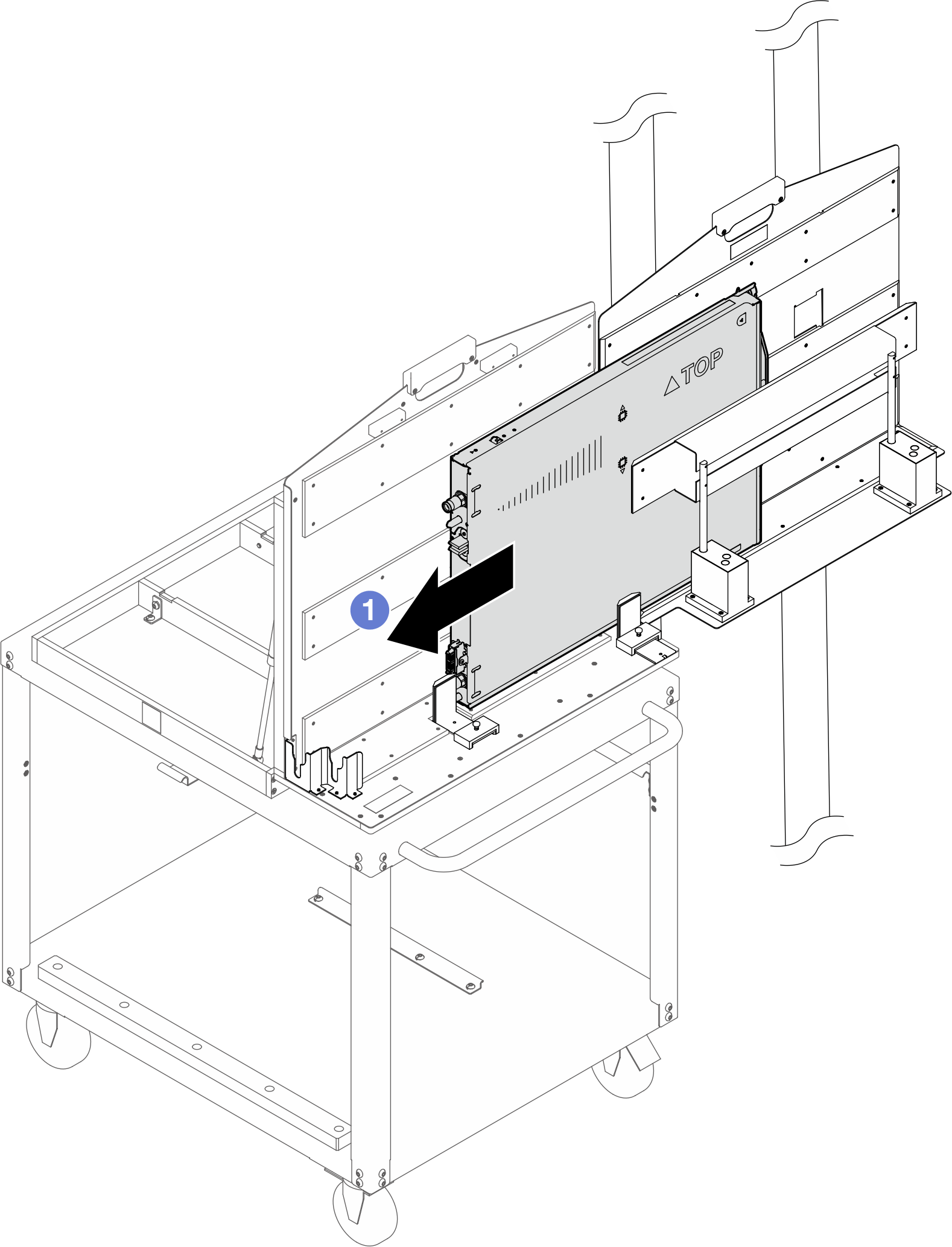 For assembling instructions, see Setting up the rotate fixture cart assembly