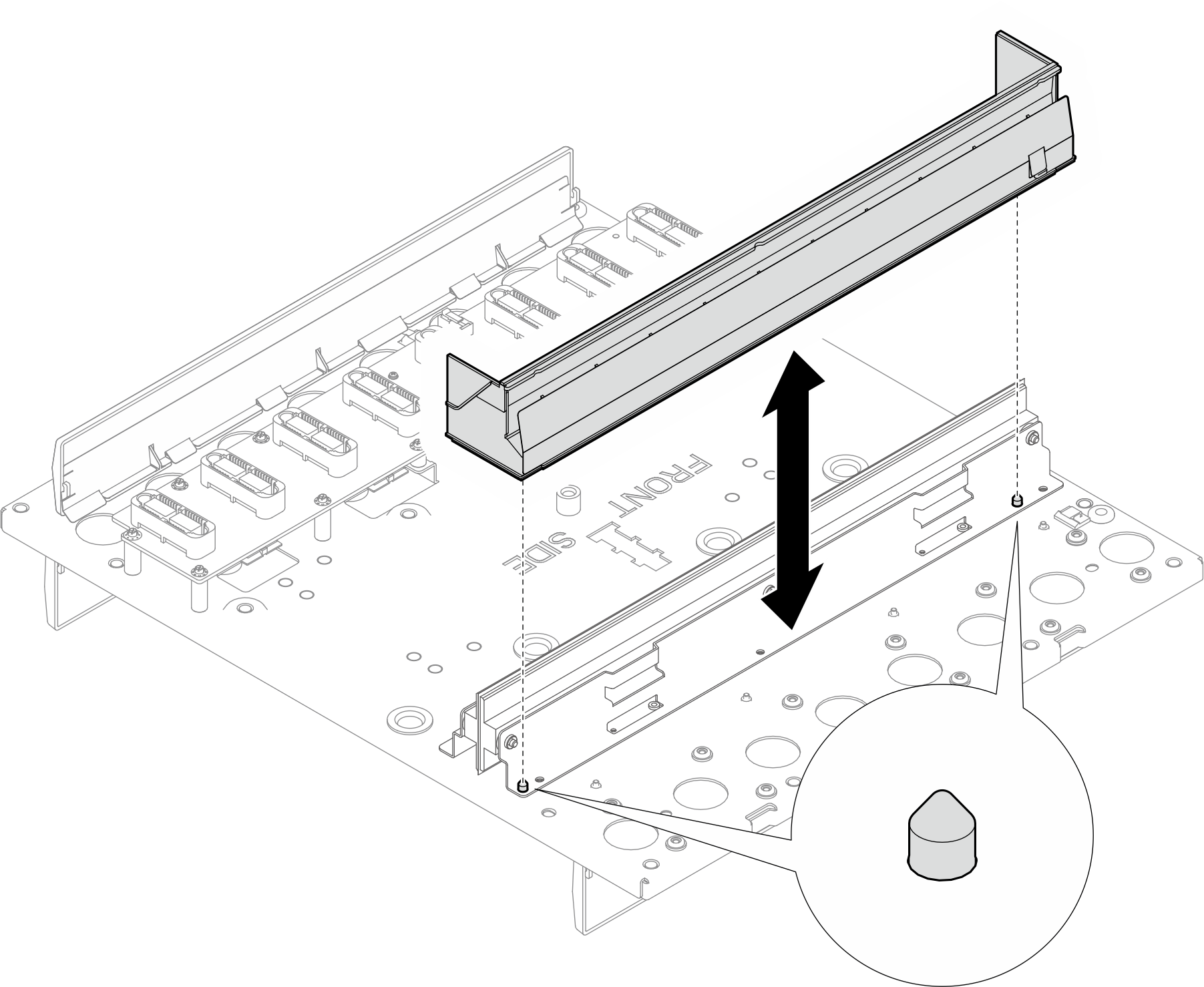 The bus bar cover is attached on top of the bus bar on the front side of the mid-plate assembly.