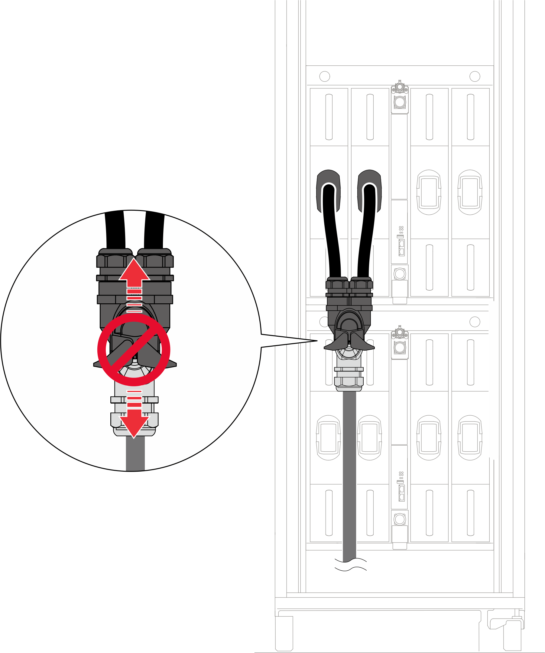 Figure 2. Disconnection NOT allowed between Y-splitter power cord and rack power cord