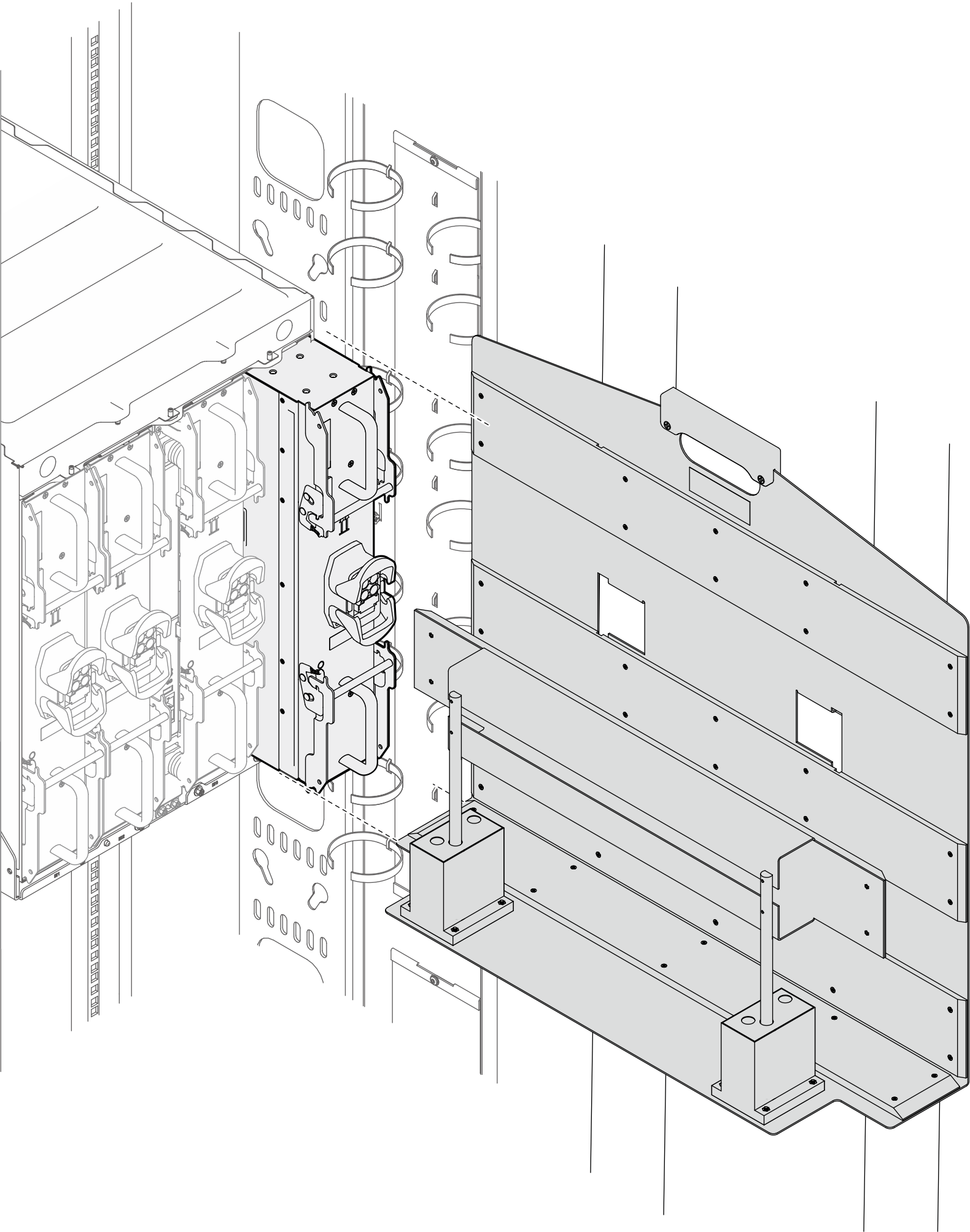 In some configurations, the PCS are connected to a Y-splitter power cord. In such cases, the Y-splitter cord is connected to a rack power cord that is connected to the facility power outlet. It is NOT allowed to disconnect the Y-splitter power cord and the rack power cord.