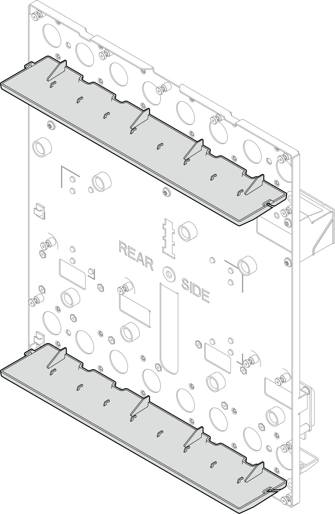 The PCS leakage trays are attached to the rear side of the mid-plate assembly.