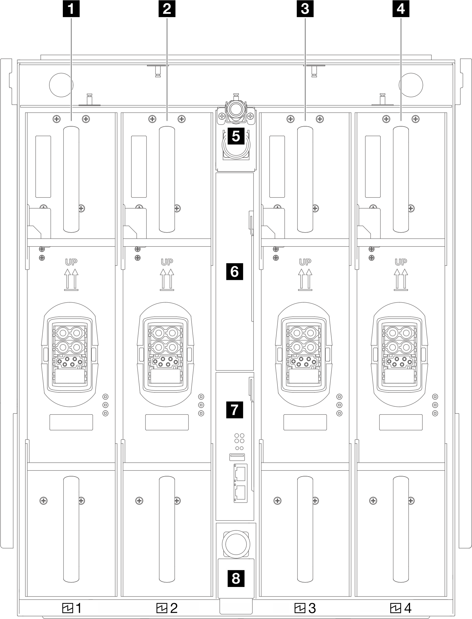 图 1. 机柜后视图和电源转换站(PCS)插槽编号