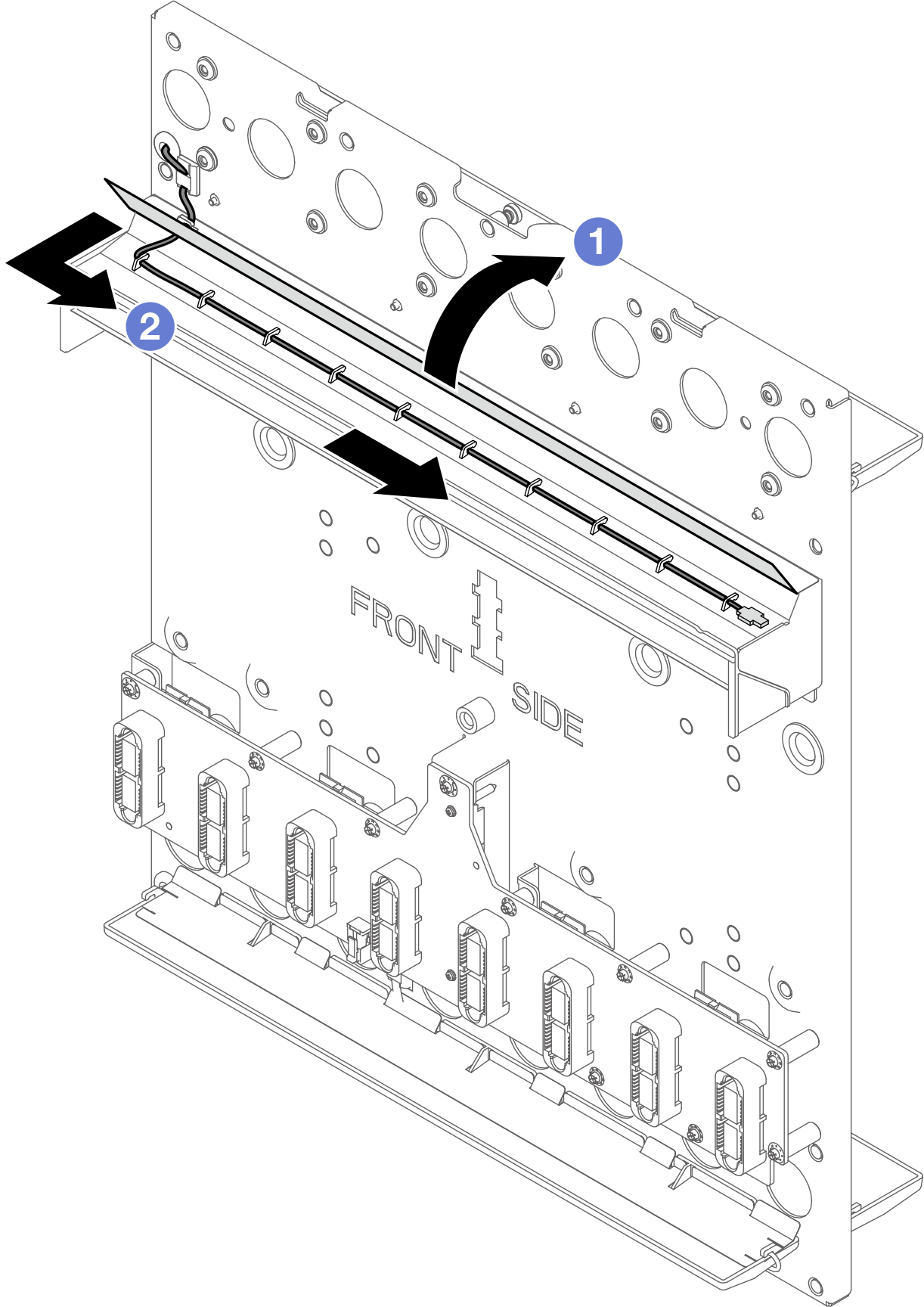 将所有托盘装入机柜正面。请参阅在机柜中安装托盘。