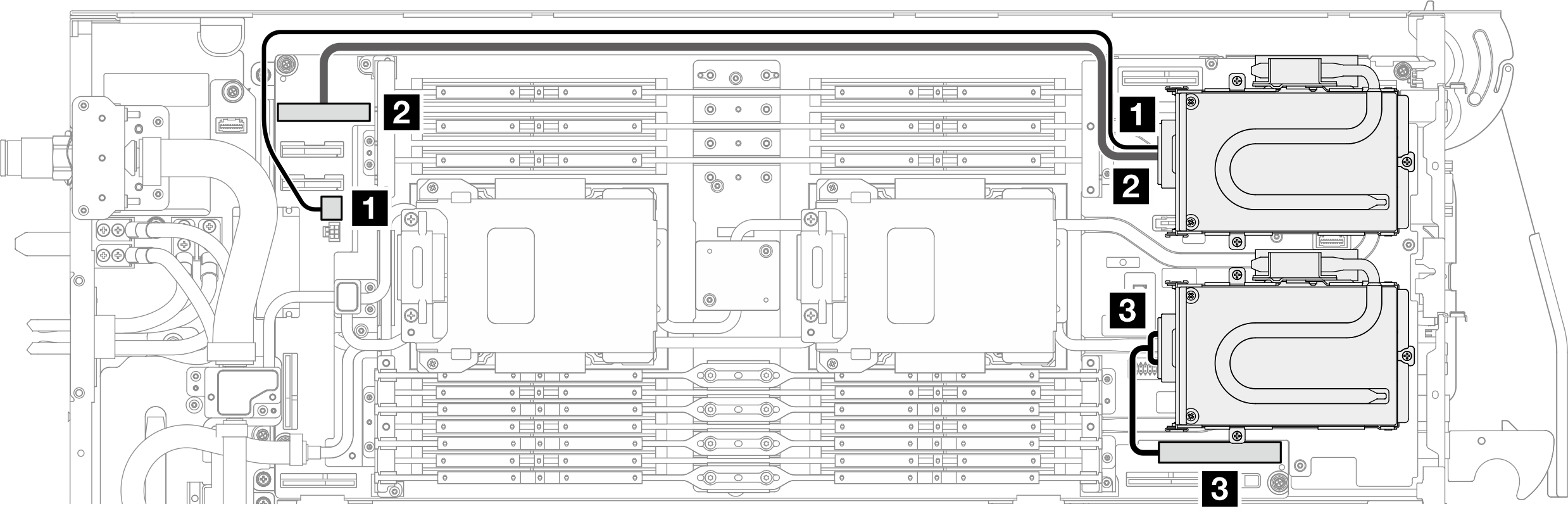 | 3 Laufwerk 1/3 in Steckplatz 1 | 3 Laufwerk 1/3-Anschluss auf der Systemplatine |