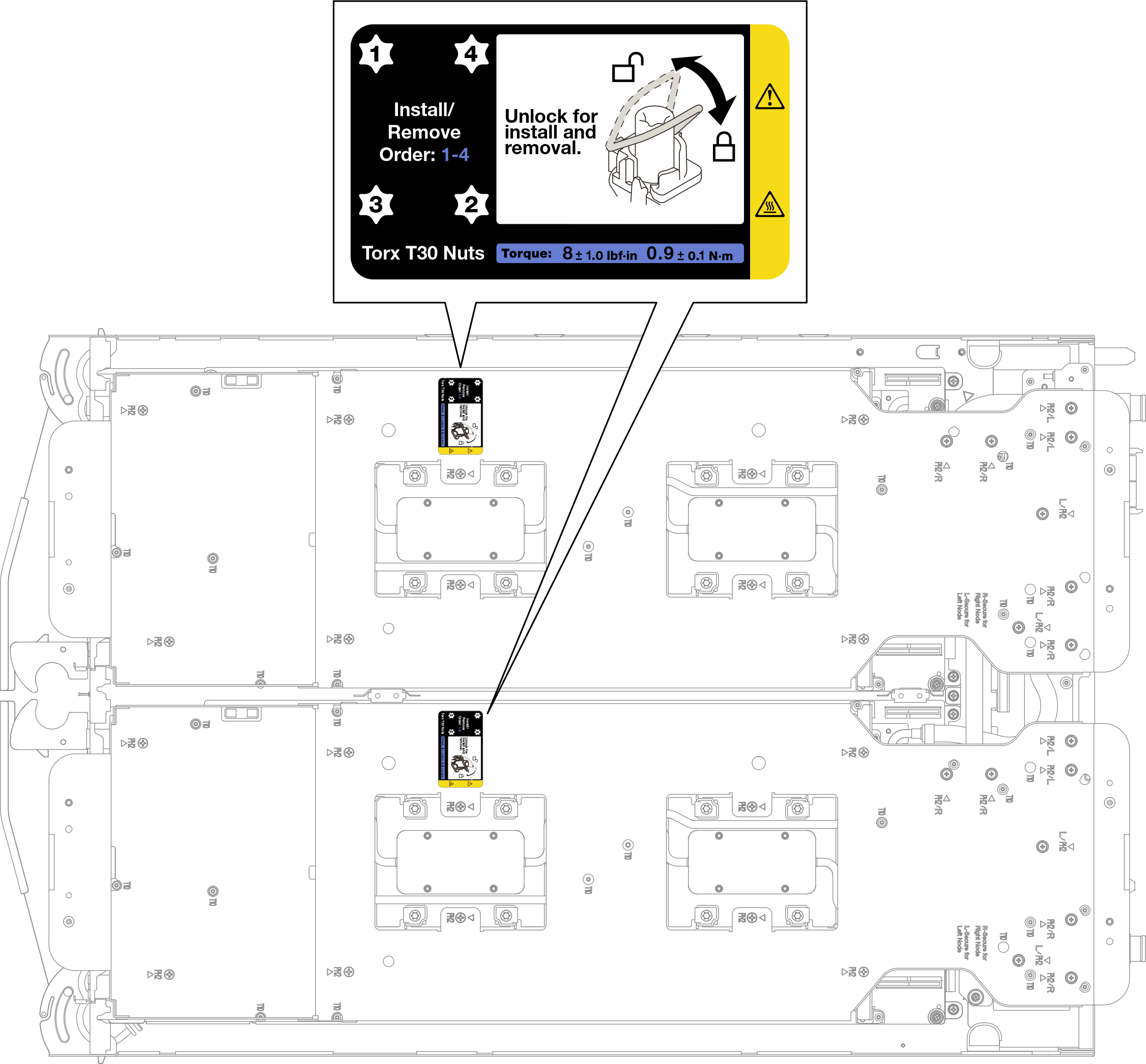 Waterloop Service Kit (SC750 V4) (Die Wasserkreislaufhalterung im Service-Kit ist wiederverwendbar. Es wird empfohlen, sie in der Einrichtung aufzubewahren, in der der Server betrieben wird, um sie bei Bedarf ersetzen zu können.)