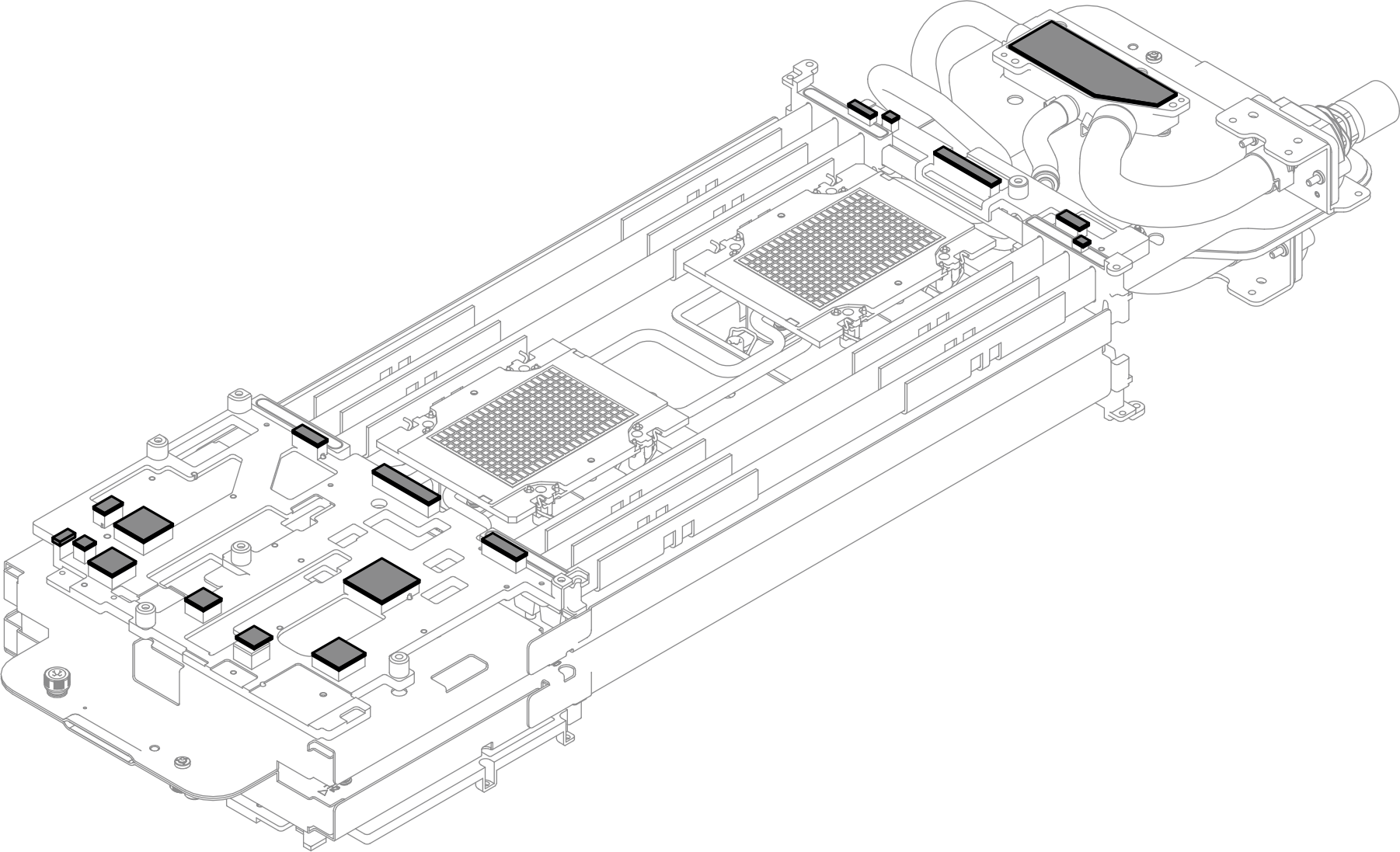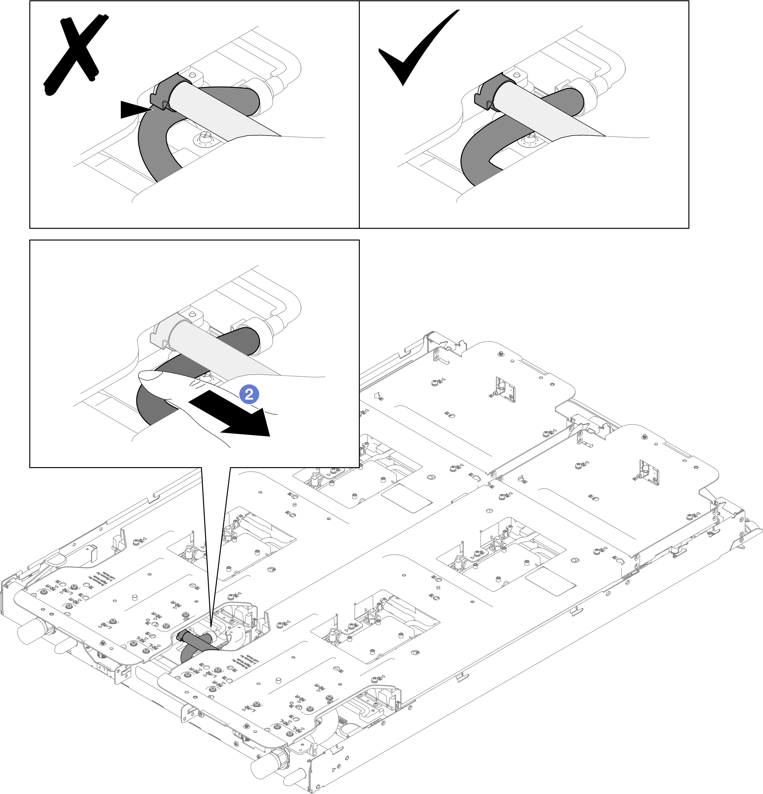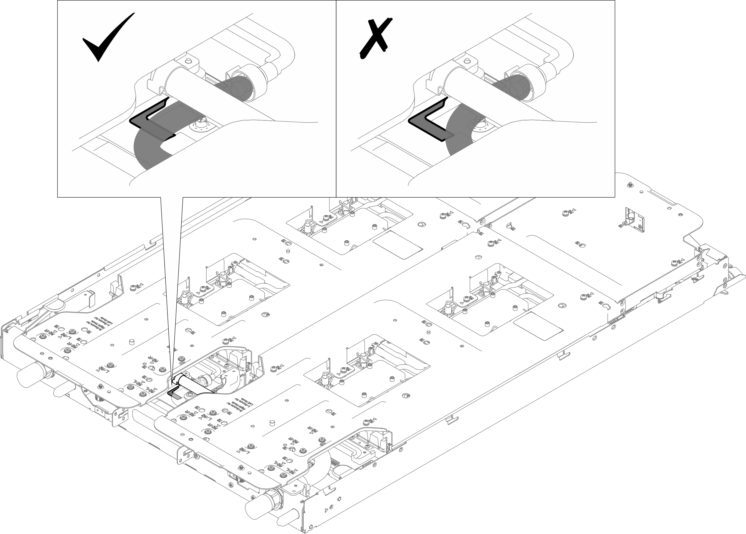 Instale el bucle de agua en el nodo del lado derecho (cuando se visualiza desde la parte frontal de la bandeja).