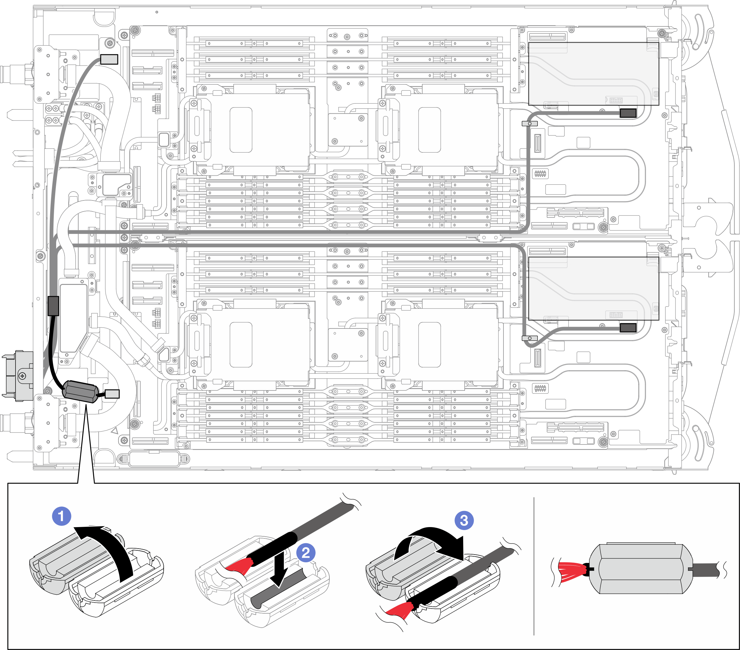 Use this information to install the ferrite core. Depending on the configuration, there may be no ferrite core attached to the sideband cable in the system.
