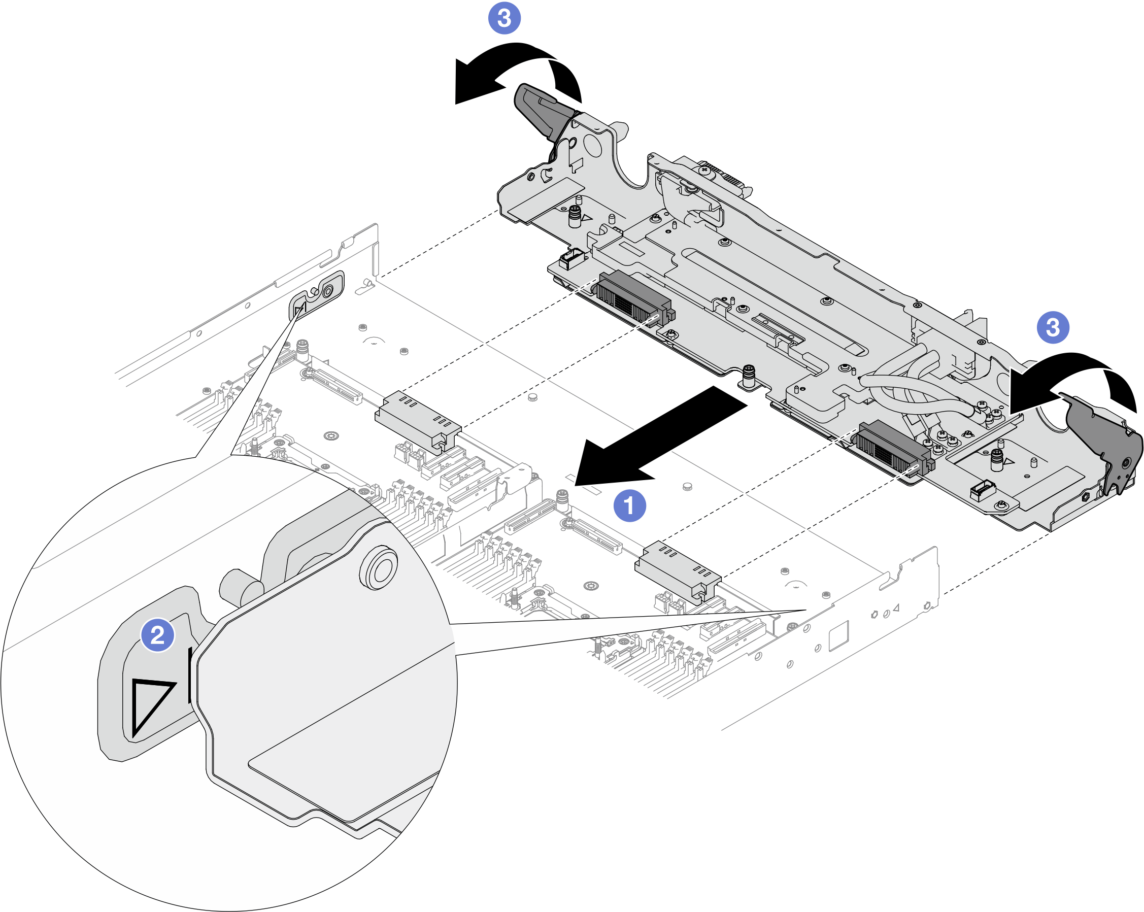 Installez le boîtier d’unités de disque dur E3.s central. Voir Installation d’un assemblage de boîtier d’unités de disque dur central E3.S 1T.