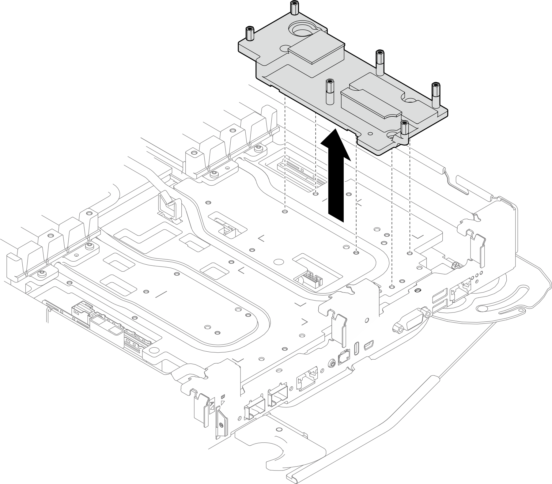 2. Loosen the ConnectX-8 riser assembly from the water loop.