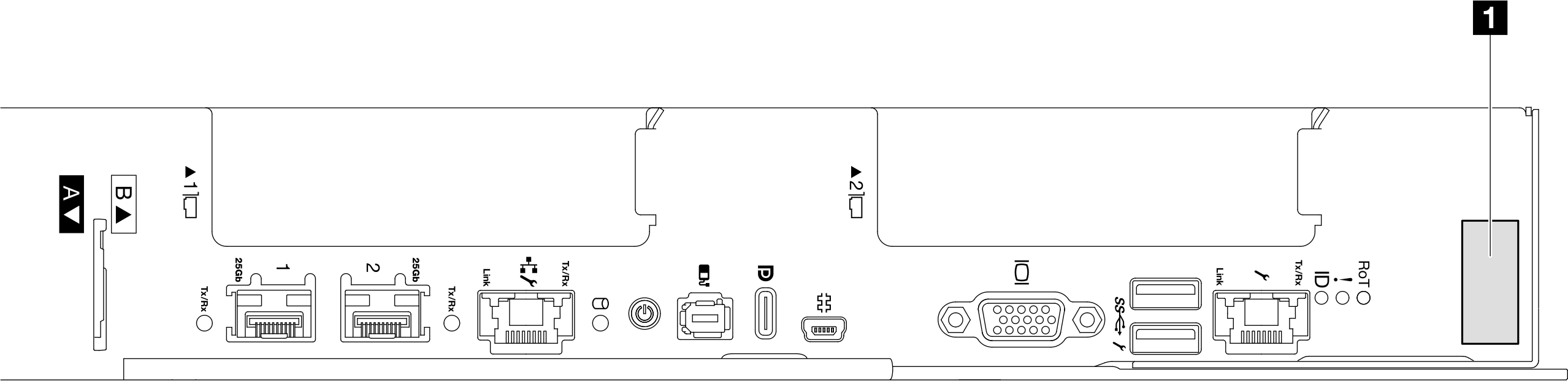 In addition, the Lenovo XClarity Controller network access label for both nodes can be found on the pull out information tag located at the front of the tray. You can use the information on the pull out tag to access the XCC MAC address and LLA for each node. The left node information is on the left side and the right node information is on the right side. You can also use the information tag for your own node labeling information such as the hostname, the system name and the inventory bar code.