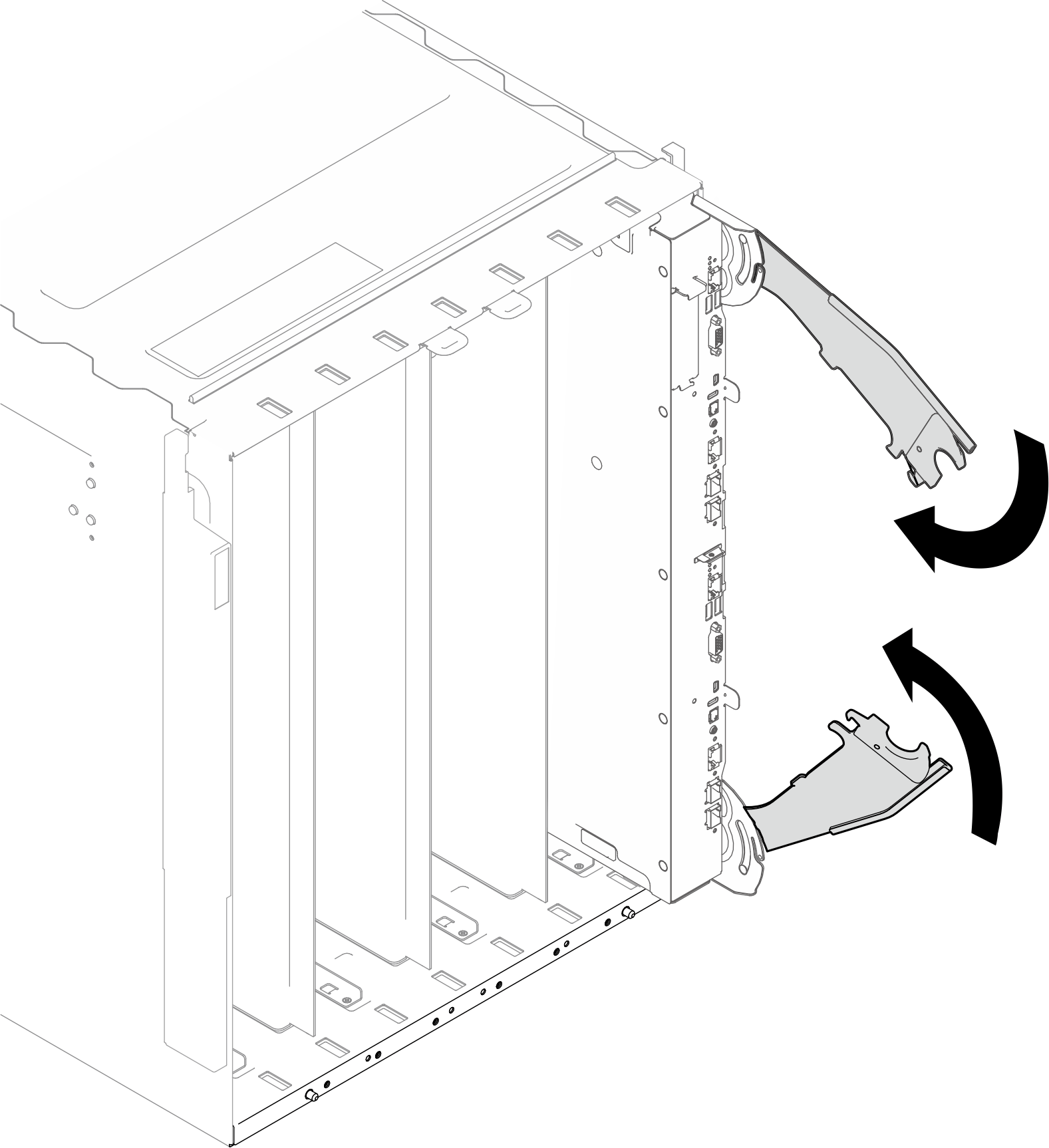 Rotate both top and bottom handles to the closed position to secure the tray in the enclosure.