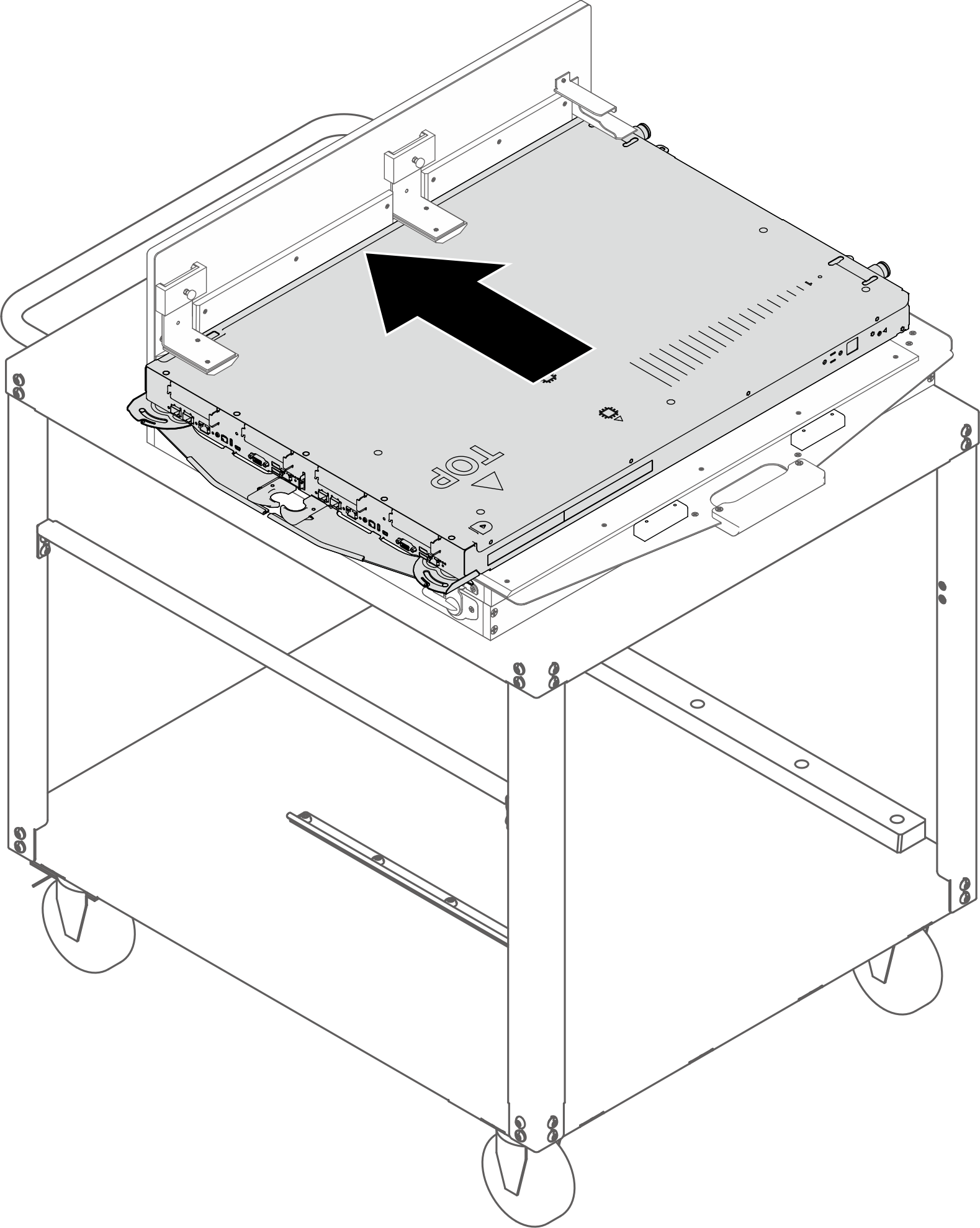 For safety reasons, when removing a tray or a PCS, it is highly recommended to use the Genie® Lift™ GL™-8 due to the server’s weight. Lenovo offers the lift with add on fixtures Genie Lift GL-8 Option Kit and GL-8 Kit for N1380 and SC Systems. If no lift tool is available on-site, customers must move the machine to an accessible, powered area before the trained technician arrives and handles reinstallation. Lenovo strongly advises configuring a complete solution for N1380 and SC-Systems with the lift tool and its add-on features via non-racked items.
