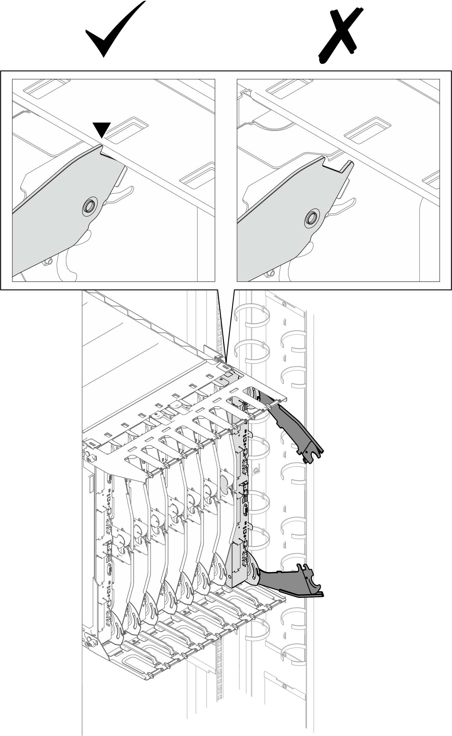 If you are reinstalling a DWC tray that you removed, you must install it in the same tray bay from which you removed it. Some DWC tray configuration information and update options are established according to tray bay number. Reinstalling a DWC tray into a different tray bay can have unintended consequences. If you reinstall the DWC tray into a different tray bay, you might have to reconfigure the DWC nodes in the tray.