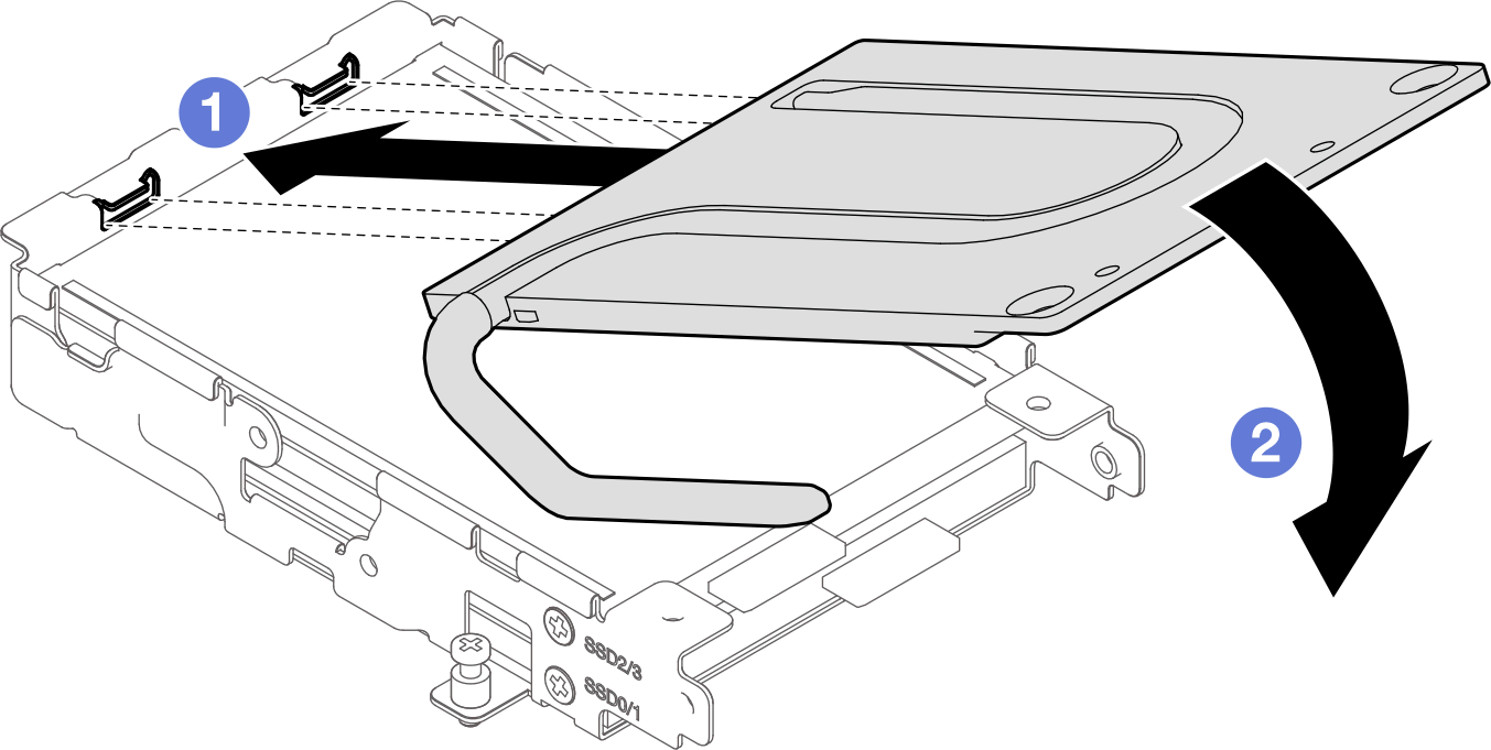 Install the tray into the enclosure. See Install a tray in the enclosure.