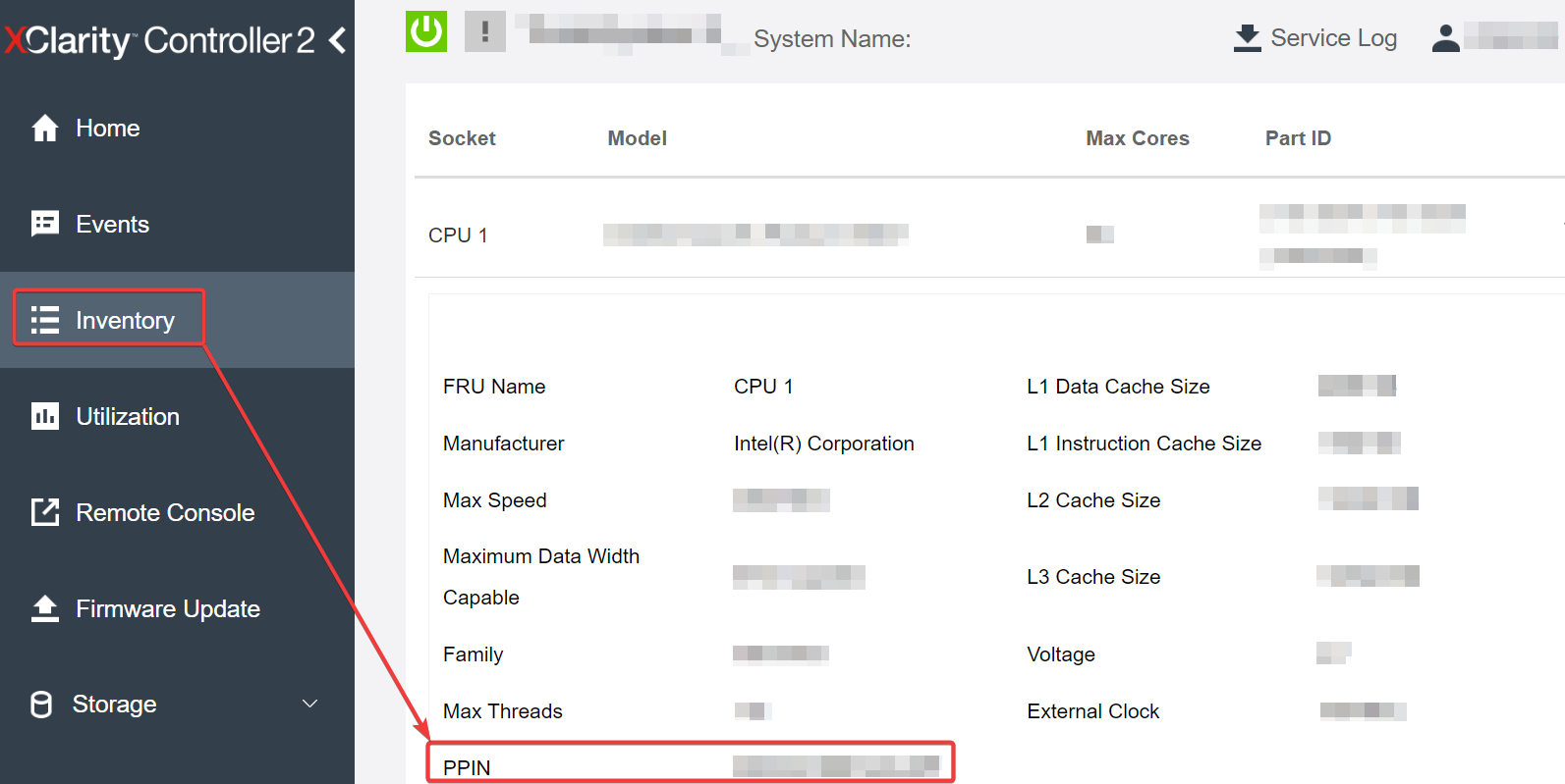 保護プロセッサー・インベントリー番号 (PPIN) は、Intel On Demand を有効にするための必須情報です。PPIN は、XCC Web GUI、XCC REST API、および LXCE OneCLI によって読み取ることができます。詳しくは、以下を参照してください。