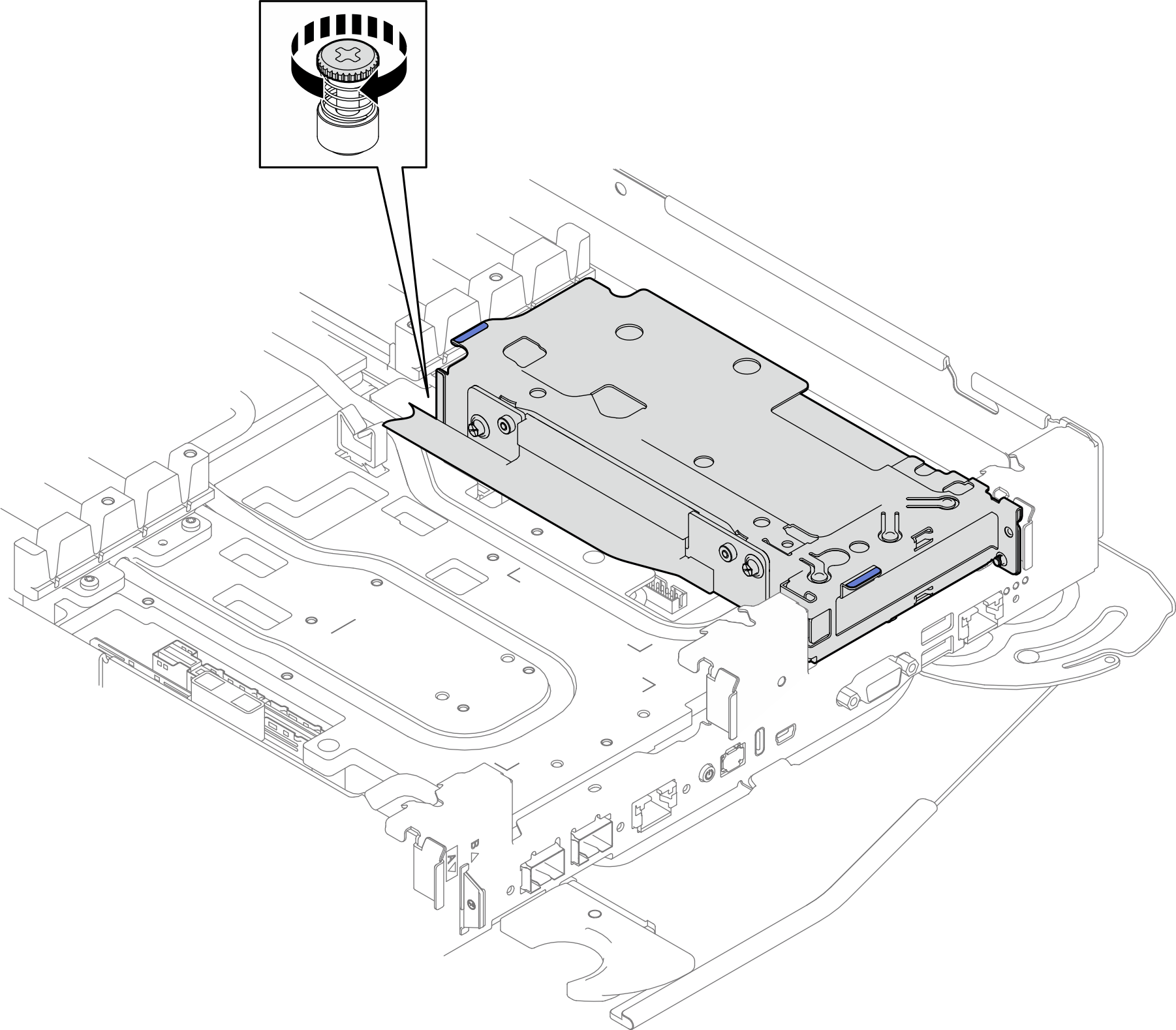 3. Fasten the captive screw to secure the riser assembly to the water loop.