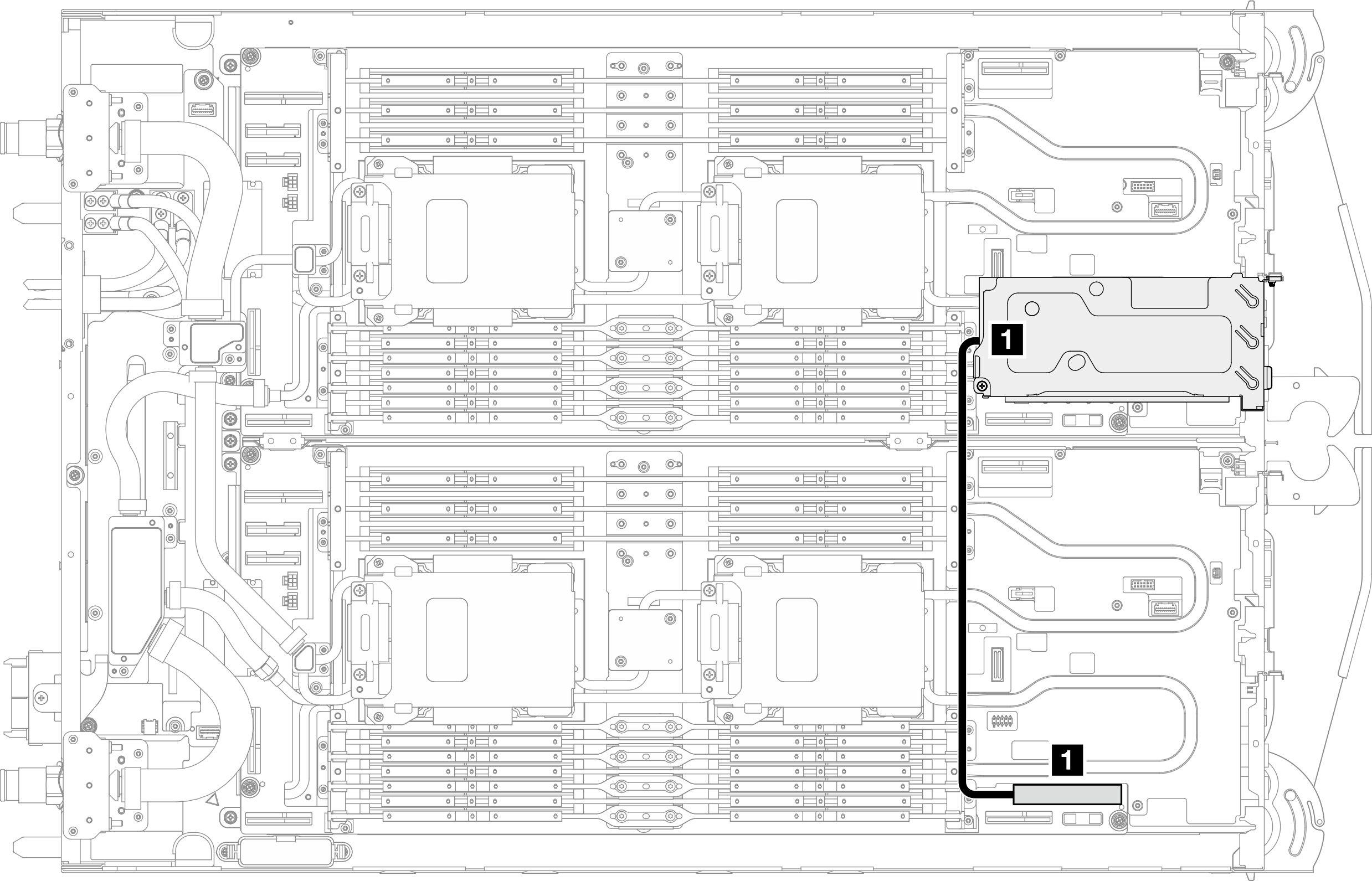 | 2 スロット 2 の PCIe アダプター | 2 システム・ボード上の PCIe ライザー 1 PCIe x16 コネクター |