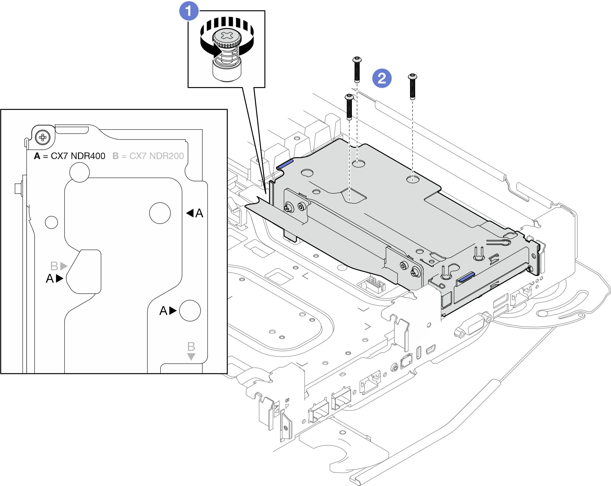 ConnectX-7 NDR 400 アダプター・ライザー・アセンブリーの取り外し