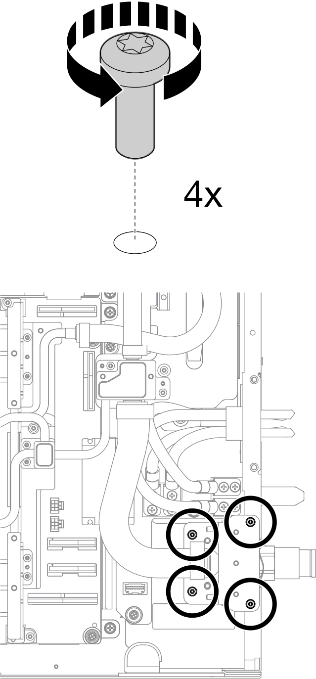 프로세서 또는 워터 루프의 열전도 그리스가 무엇과도 접촉하지 않도록 하십시오. 표면에 접촉하면 열전도 그리스가 손상되어 비효율적입니다. 열전도 그리스는 프로세서 소켓의 전기 커넥터와 같은 구성 요소를 손상시킬 수 있습니다. 지시사항이 표시될 때까지 냉각판에서 그리스 덮개를 제거하지 마십시오.