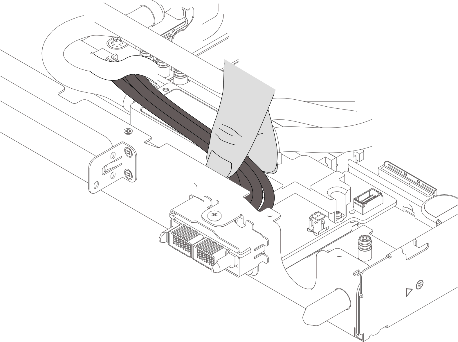 - 케이블 손상을 방지하려면 워터 루프를 통해 사이드밴드 케이블을 배선할 때 사이드밴드 모듈 근처의 케이블을 잡아야 합니다.그림 1. 사이드밴드 케이블 고정