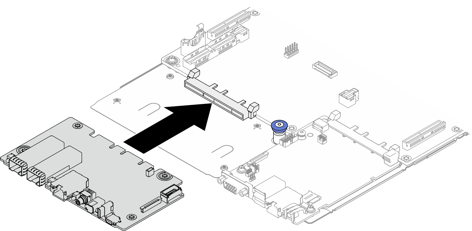 - 安装 PCIe 适配器转接卡架。请参阅安装 ConnectX-7 NDR 200 适配器转接卡组合件或安装 ConnectX-7 NDR 400 适配器转接卡组合件。