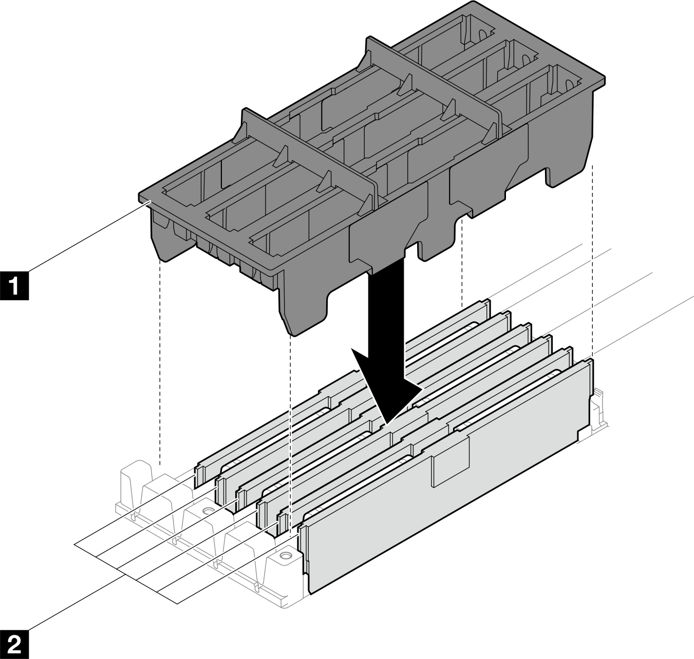 切勿同时拿取两个或更多内存条,以免使其互相接触。存储时请勿直接堆叠内存条。