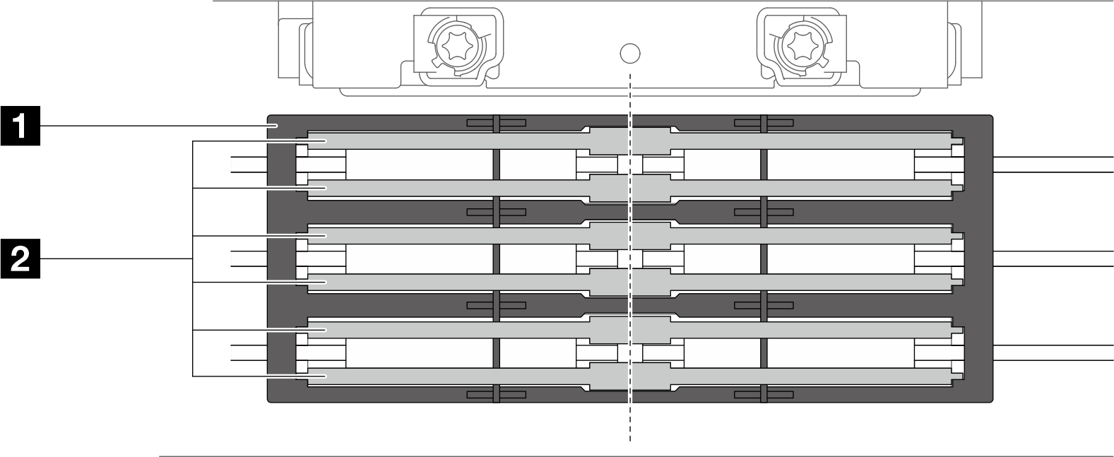 32GB、64GB 和 96GB RDIMM 需要单侧散热。(128 GB RDIMM、32 GB MRDIMM、64 GB MRDIMM 需要双侧散热,请参阅更换内存条(双侧散热)。)