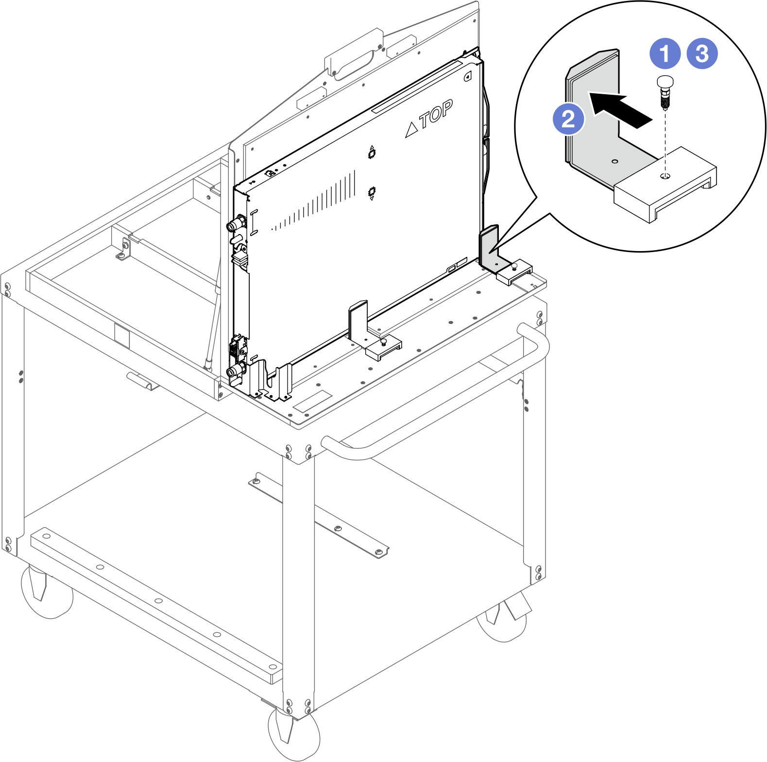 如需了解组装说明,请参阅安装旋转夹具推车组合件。