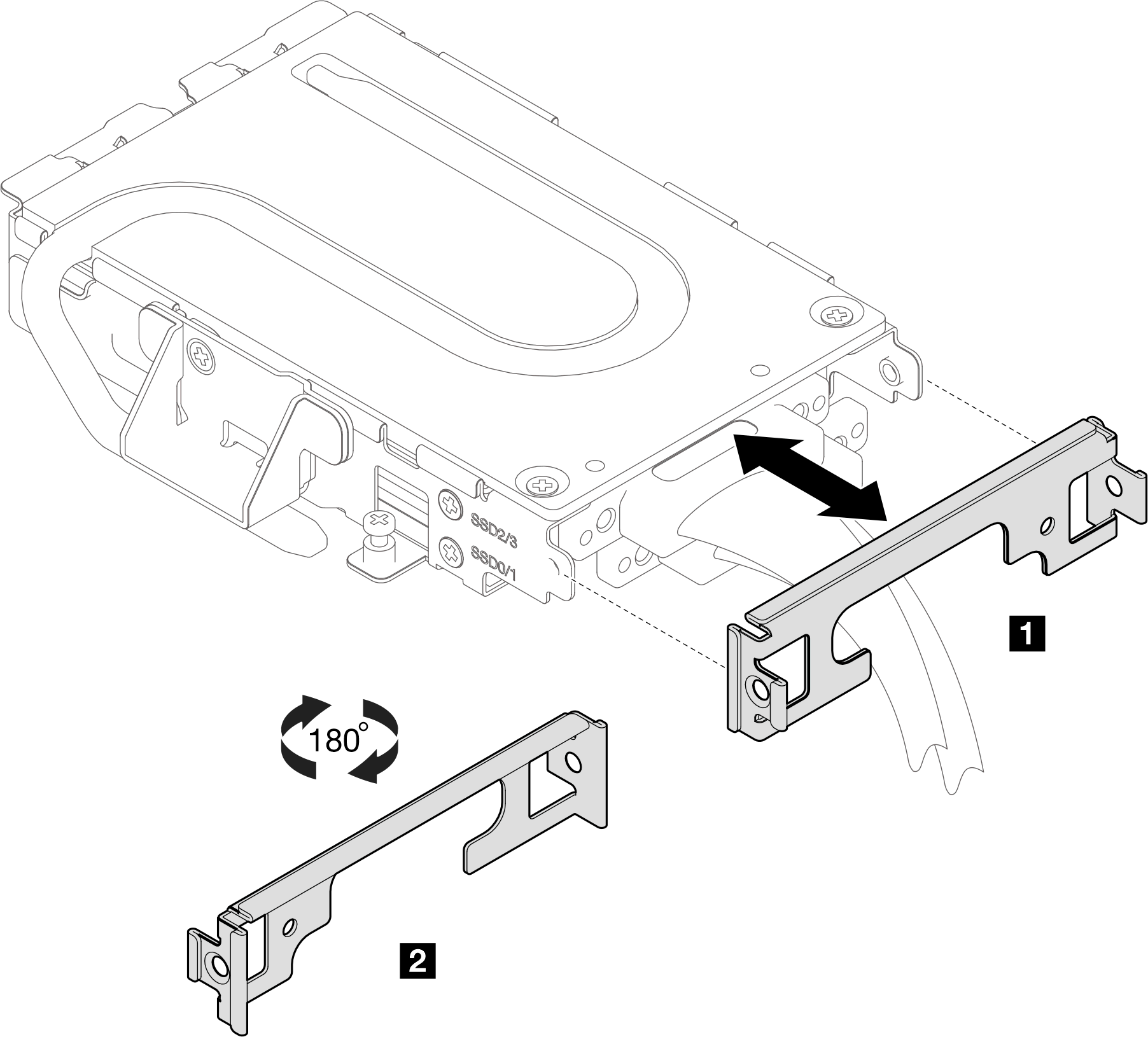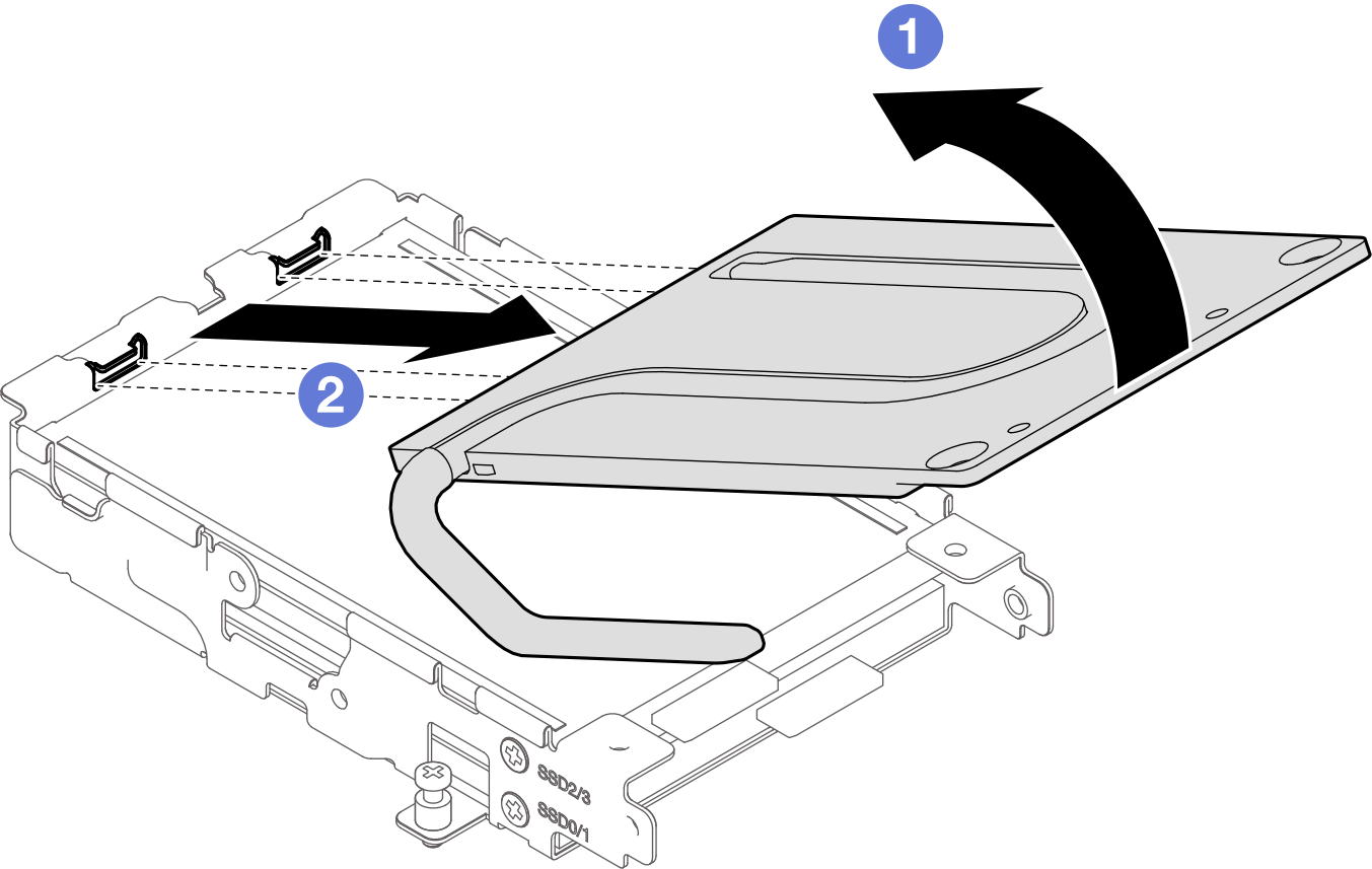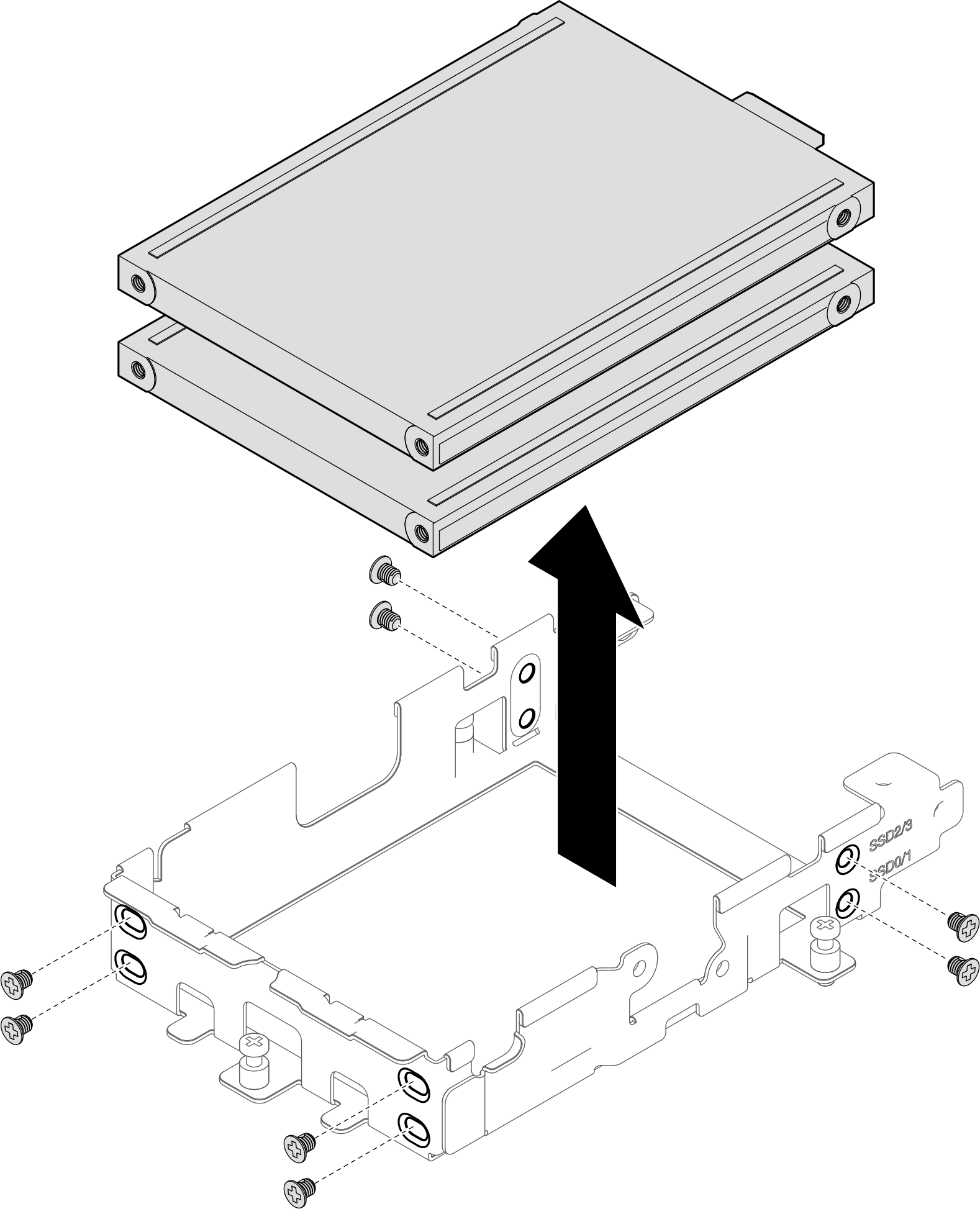 硬件更换过程更换托盘中的组件(仅限经过培训的技术人员)更换 E3.S 1T 双正面硬盘卸下 E3.S 1T 双正面硬盘卸下 E3.S 1T 双正面硬盘按以下信息卸下 E3.S 1T 双正面硬盘。关于本任务必备工具适用于 PH1 螺钉的十字螺丝刀Storage Gap Pad Kit (SC750 V4) Storage Conduction Plate (如果是首次安装 E3.S 1T 双正面硬盘)注意请阅读安装准则和安全检查核对表以确保操作安全。关闭要执行任务的相应 DWC 托盘。从机柜上拔下所有外部线缆。如果 QSFP 线缆已连接至解决方案,请用力将这些线缆拔下。观看操作过程关于此过程的视频请见 YouTube。过程为本任务做好准备。从机柜上卸下托盘。请参阅从机柜上卸下托盘。卸下托盘外盖。请参阅卸下托盘外盖。卸下横梁。请参阅卸下横梁。卸下正面 E3.S 硬盘仓,请参阅卸下 E3.S 正面硬盘仓组合件。从硬盘仓上卸下线缆固定器。从硬盘仓上卸下两颗 PH 1 螺钉。图 1. 从线缆固定器上卸下螺钉卸下线缆固定器。(1 顶部散热型硬盘,2 底部散热型硬盘)图 2. 卸下线缆固定器从硬盘上拔下线缆。图 3. 从硬盘上拔下线缆卸下两颗 PH1 螺钉,以从硬盘仓上卸下侧面夹持器。图 4. 卸下侧面夹持器从散热器上卸下两颗 PH1 螺钉。图 5. 从散热器上卸下螺钉卸下散热器。 将散热器旋转至一定角度。 从硬盘仓上卸下散热器。图 6. 卸下散热器从硬盘仓上卸下八颗 PH1 螺钉图 7. 从硬盘仓上卸下螺钉从硬盘仓上卸下硬盘。图 8. 从硬盘仓上卸下硬盘完成之后如果要求您退回组件或可选设备,请按照所有包装说明进行操作,并使用装运时提供给您的所有包装材料。提供反馈