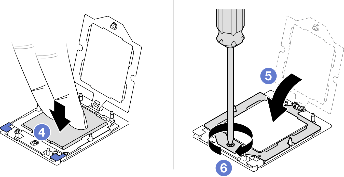 此任务包含如何安装处理器的说明。此任务需要使用 T10 内六角螺丝刀、T20 螺丝刀、1 号十字螺丝刀和 2 号十字螺丝刀。