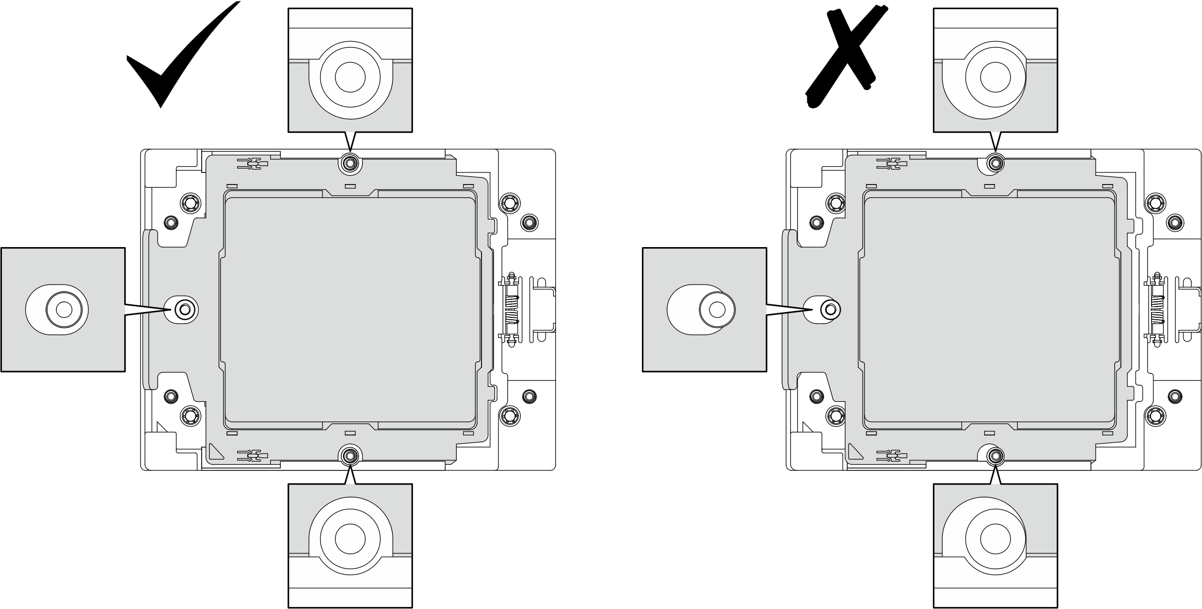请勿使处理器或水循环模块上的导热油脂接触任何物体。与任何表面接触都有可能损坏导热油脂,致其失效。导热油脂可能会损坏处理器插槽中的电气接口等组件。指示您卸下冷却板油脂外盖前请勿卸下该外盖。