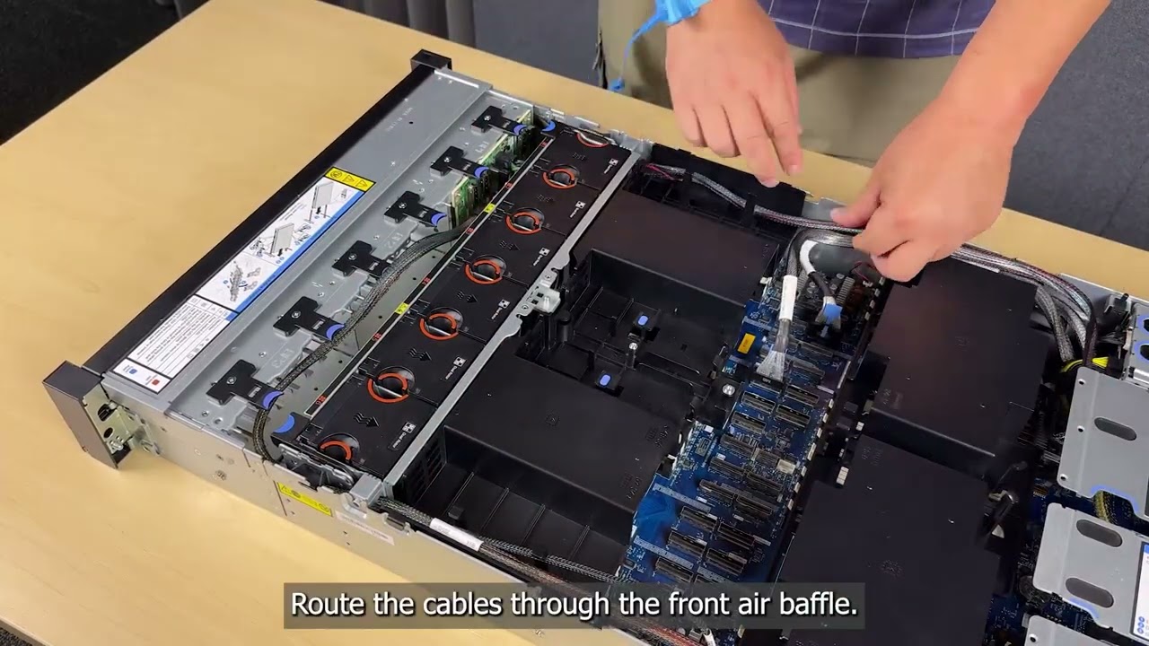 - Route the cables through the front air baffle.