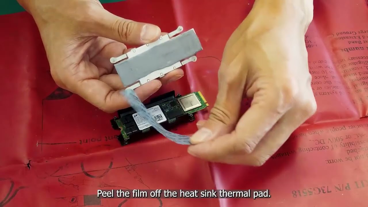 Before installing a new heat sink to the M.2 drive, peel off the films on the thermal pads.