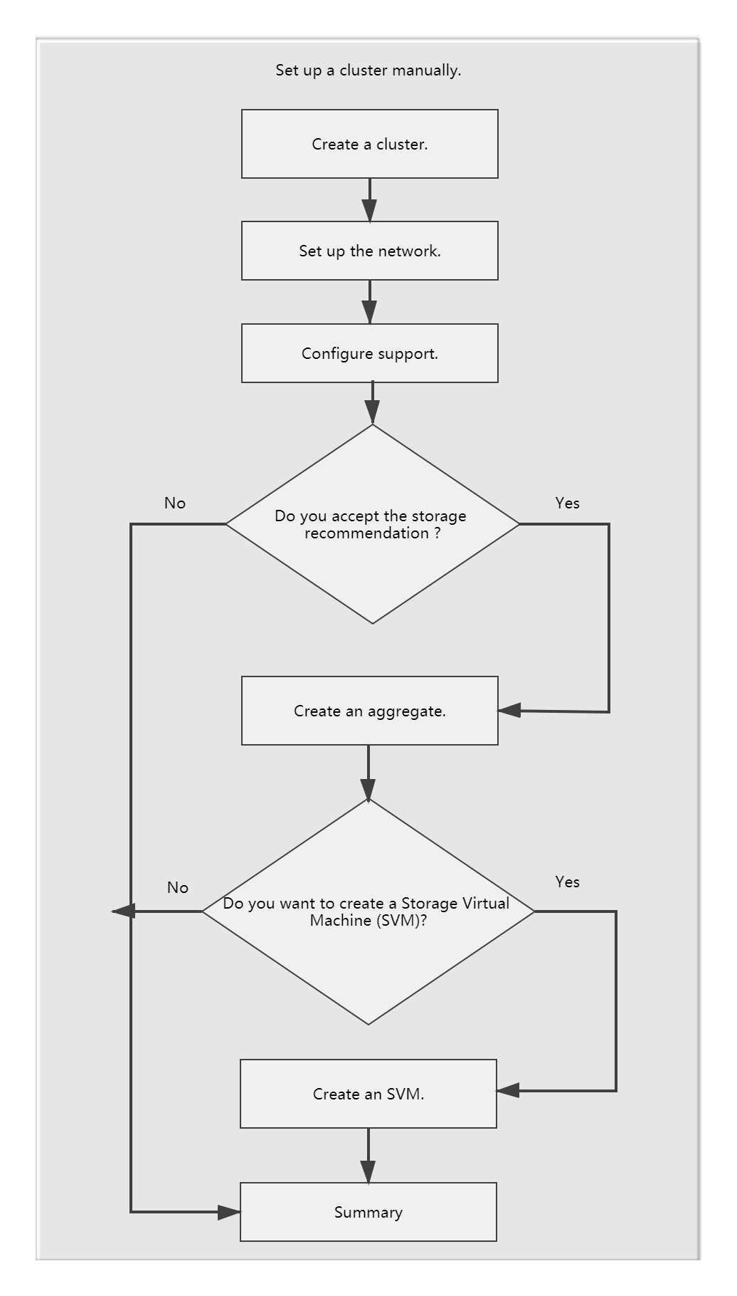 To create a cluster, you have to log in through the console, and configure the node management IP address on any node in the cluster network. After you have configured the node management IP address on a node, you can add other nodes and create a cluster by using ThinkSystem Storage Manager.